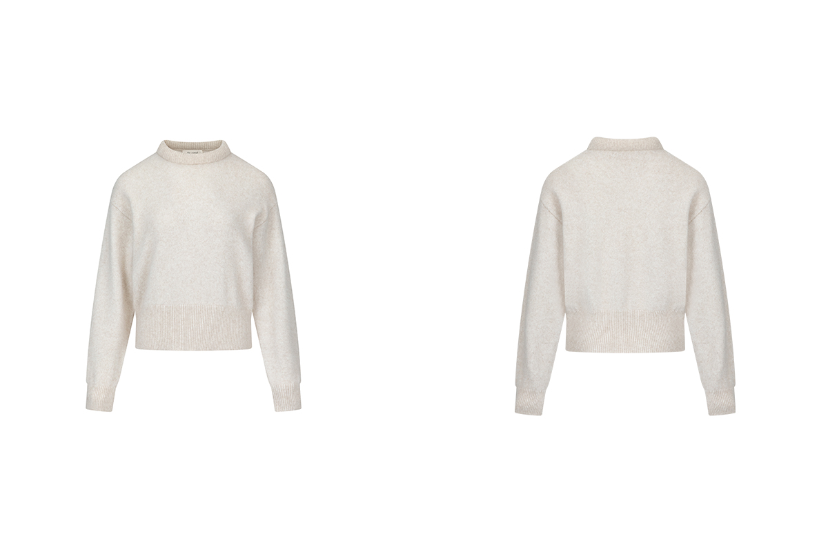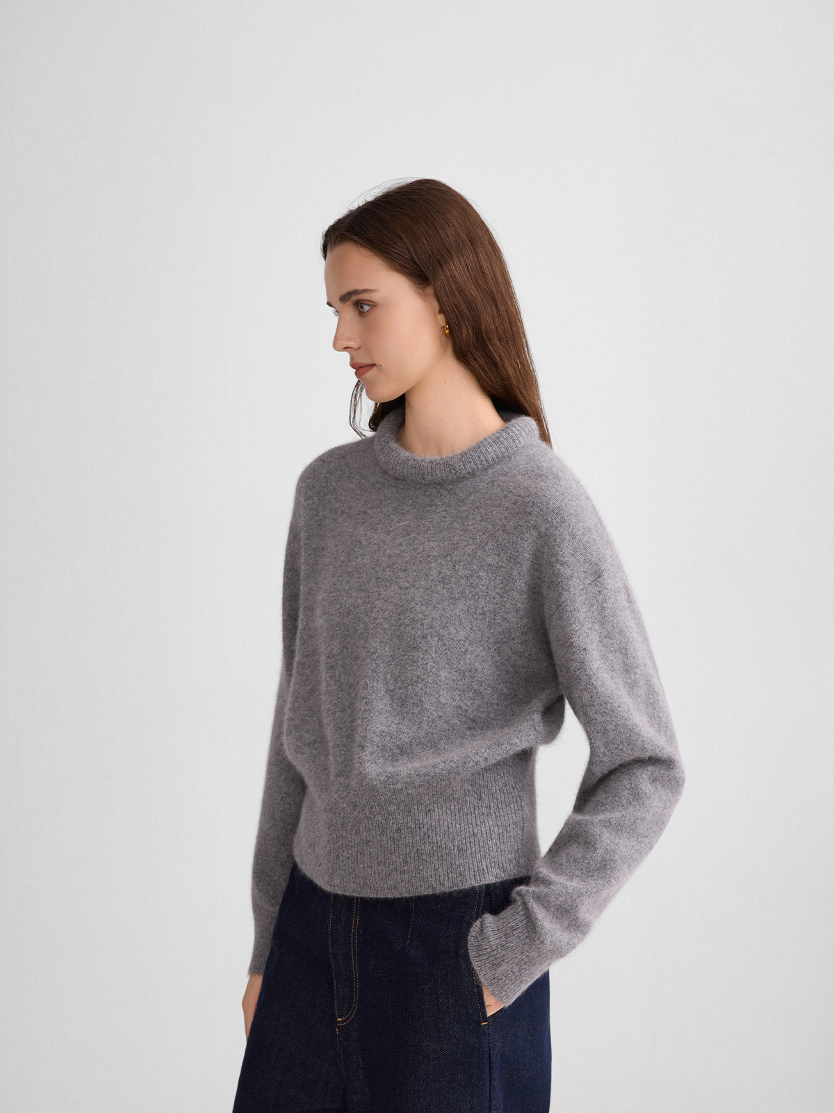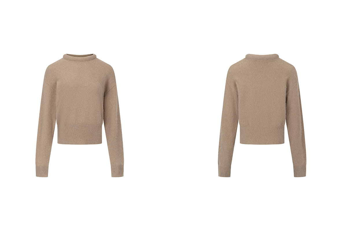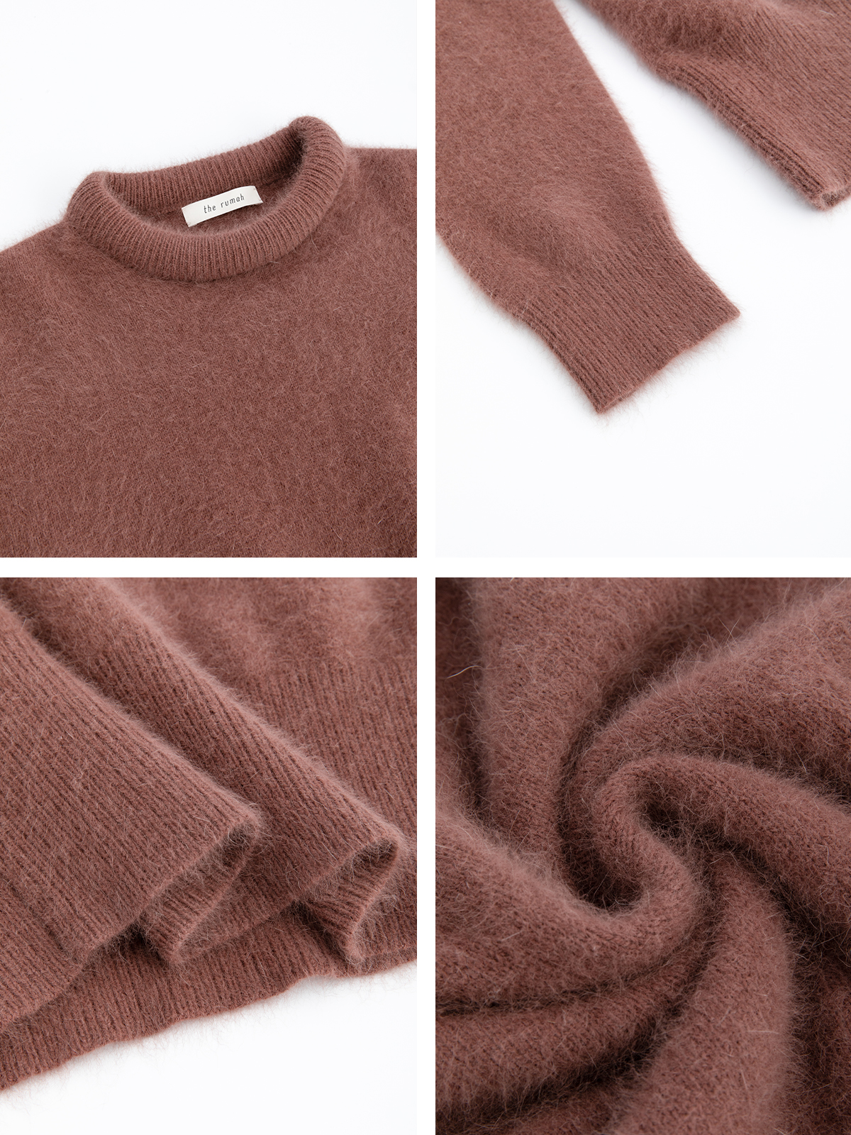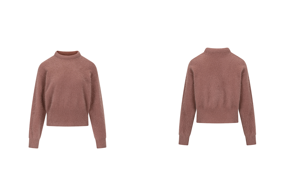 The rumah balloon neck fox fleece knitted sweater cloud mousse short slim knitted crew neck top