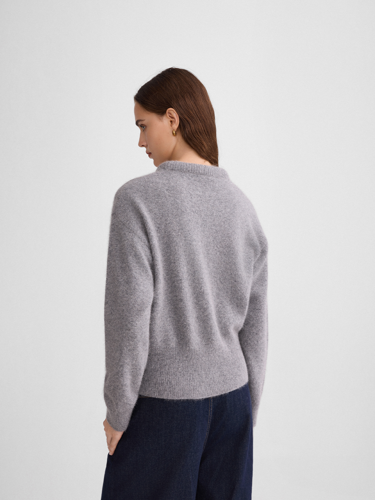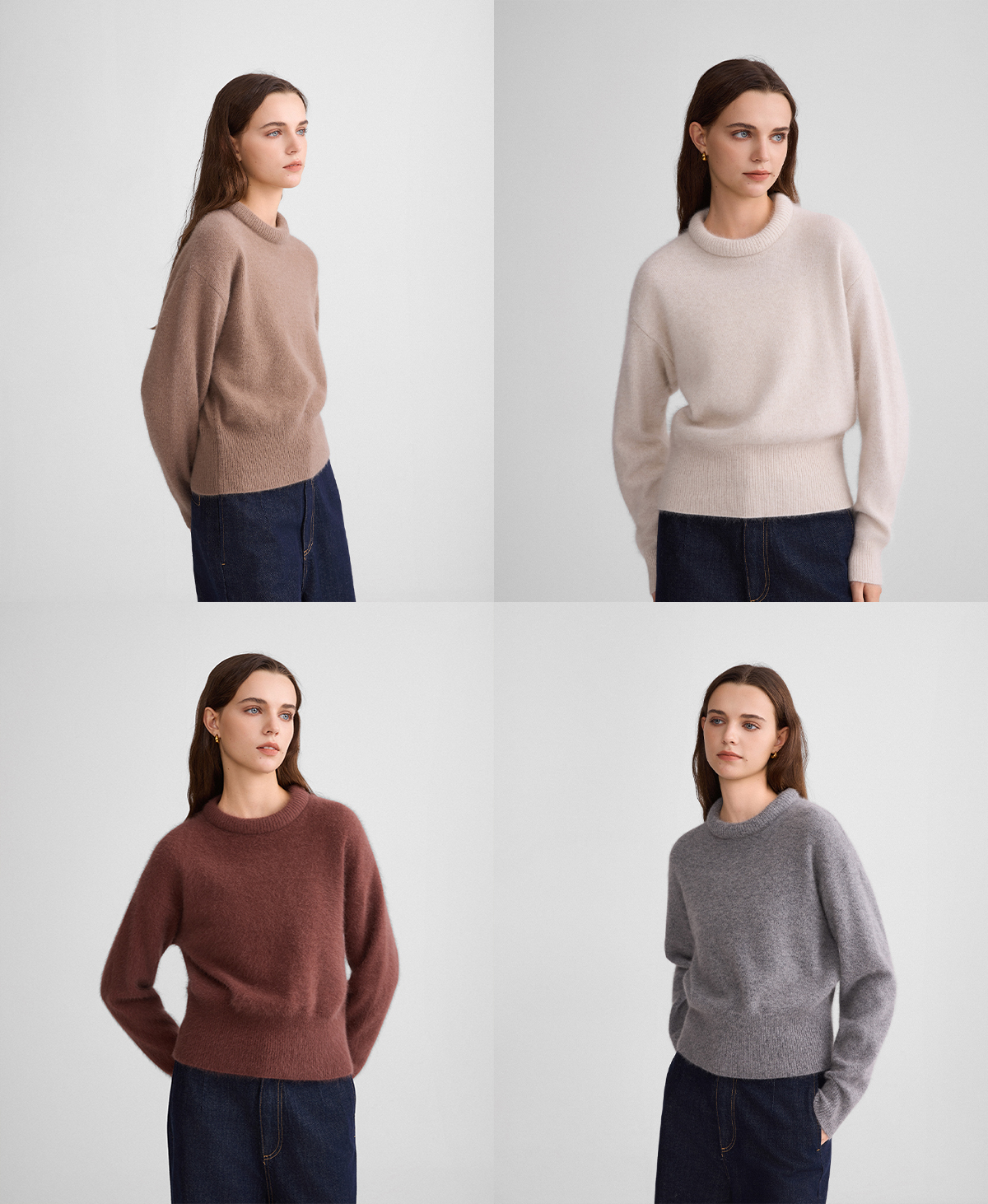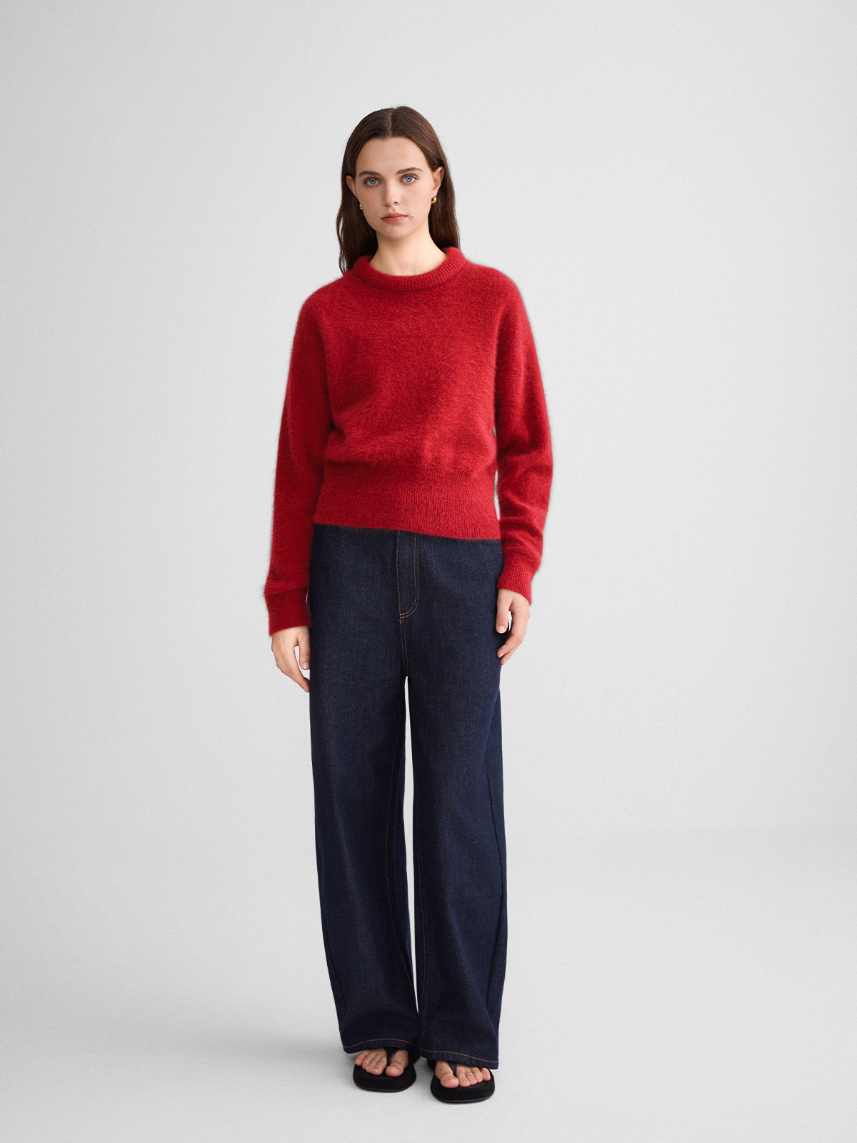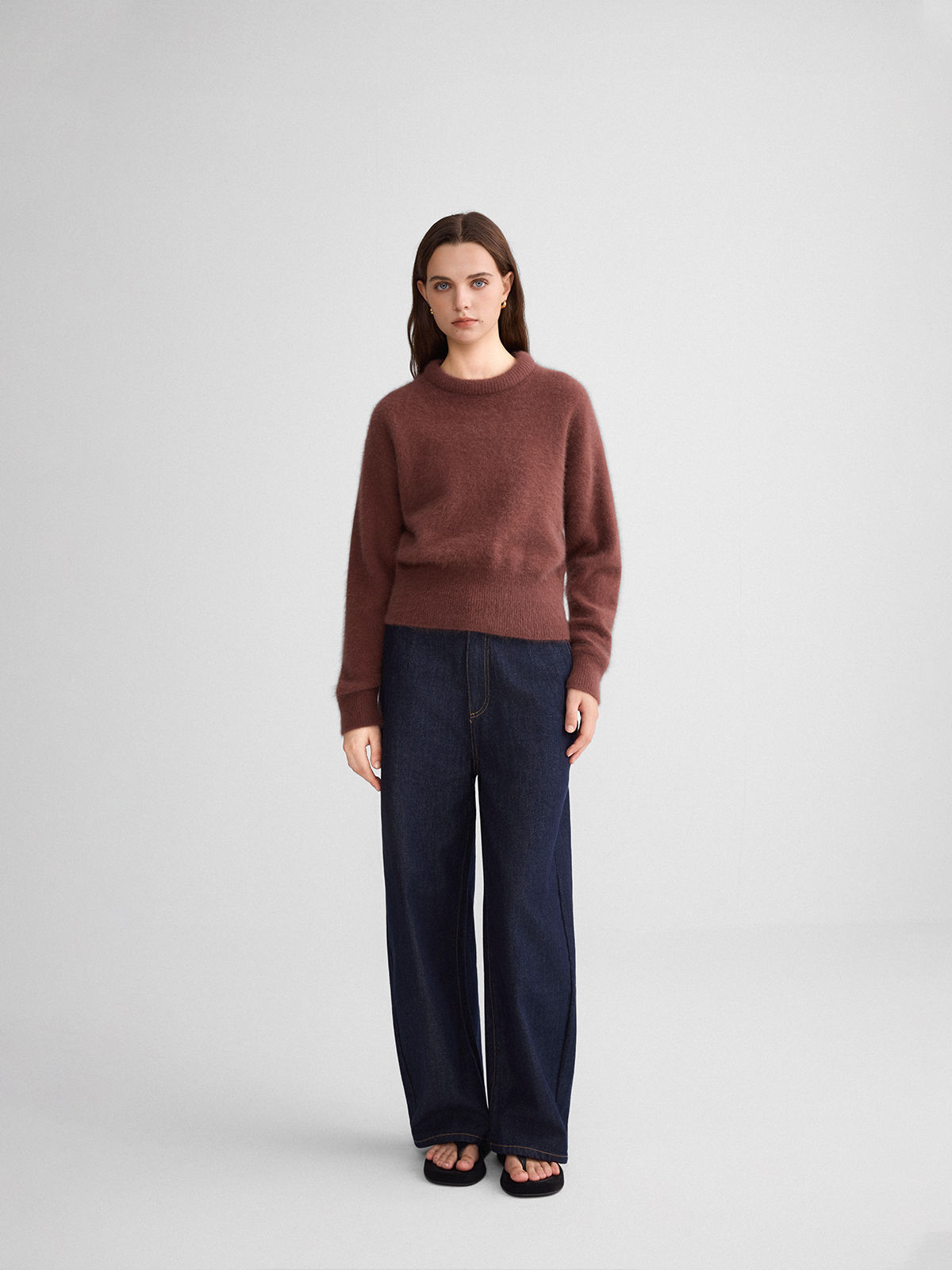The rumah balloon neck fox fleece knitted sweater cloud mousse short slim knitted crew neck top