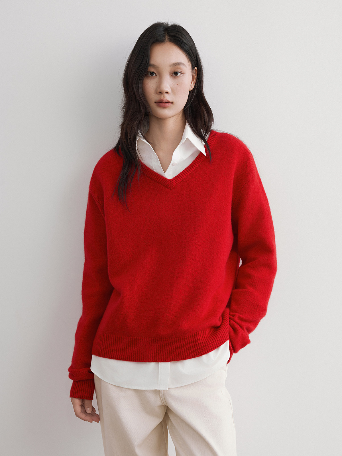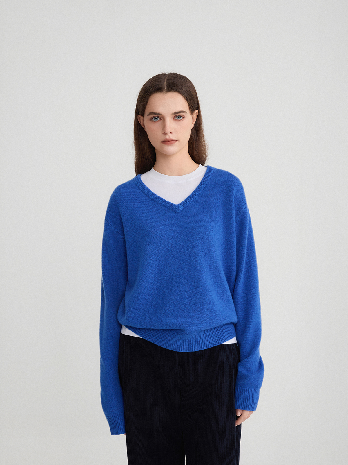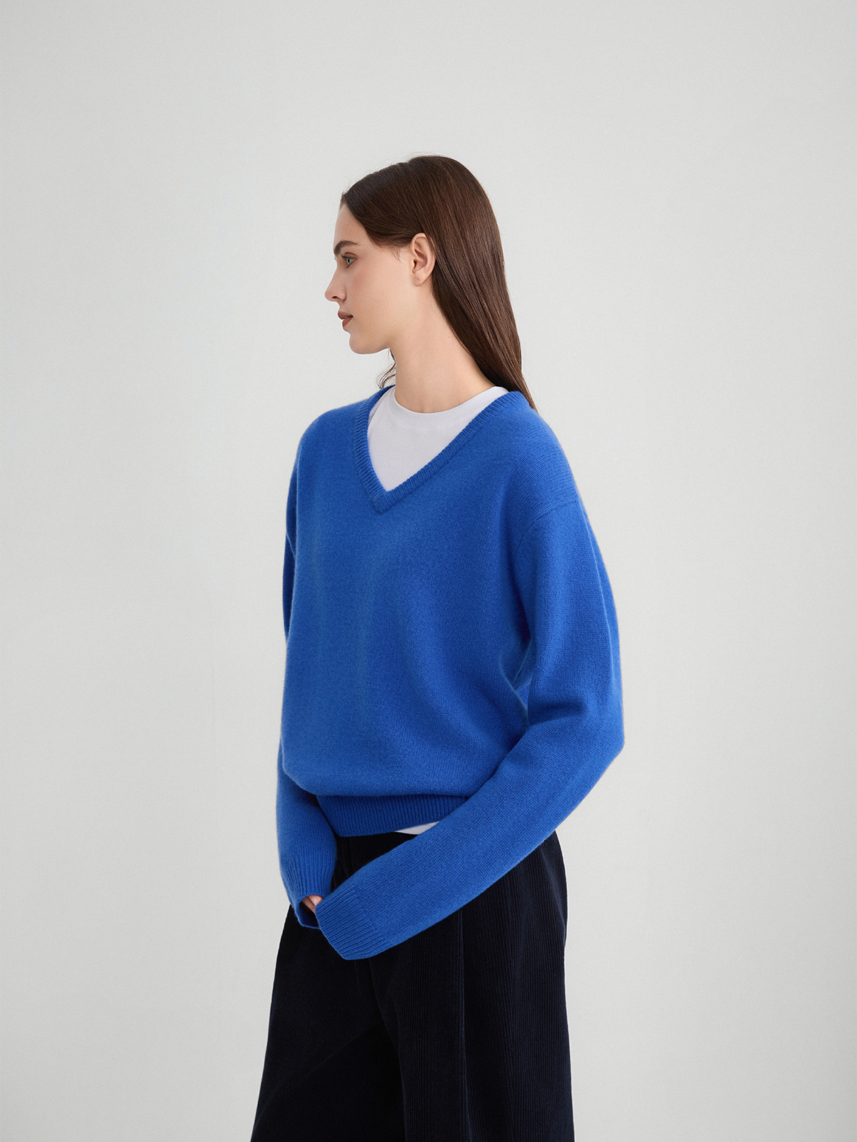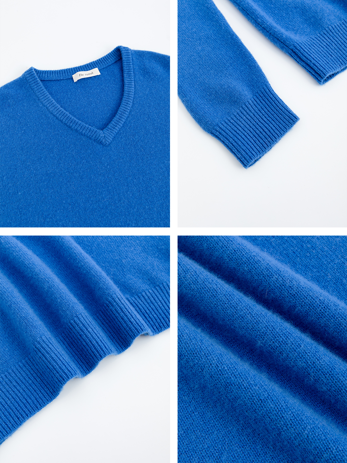 The rumah cashmere V-neck knit top, multi-colored 17.5 micron Basulan shrink-resistant and pilling-resistant