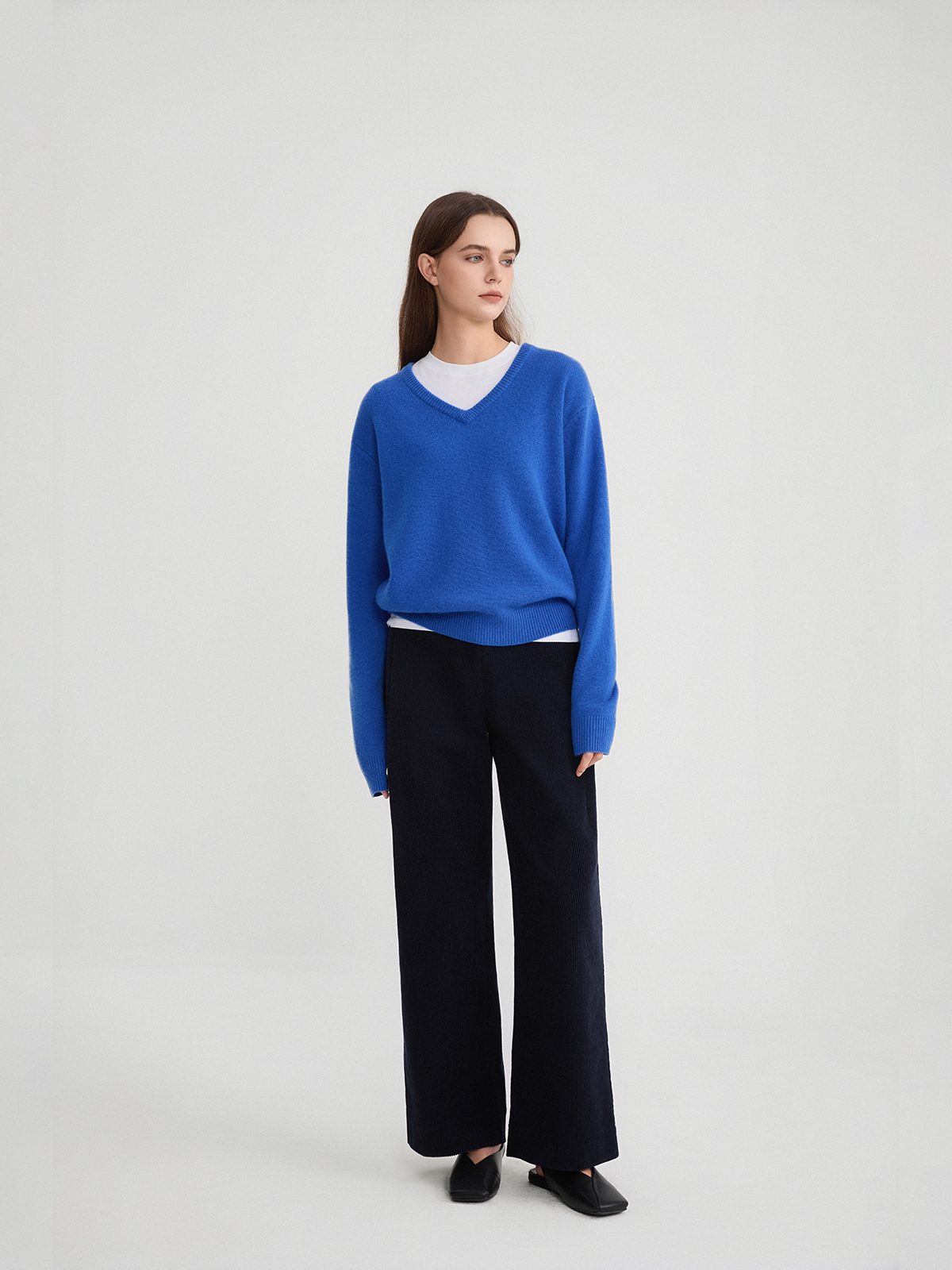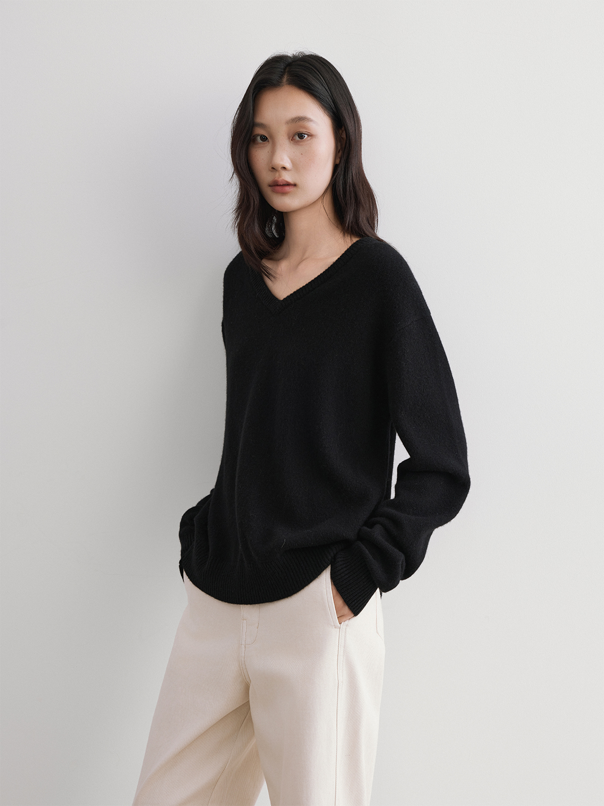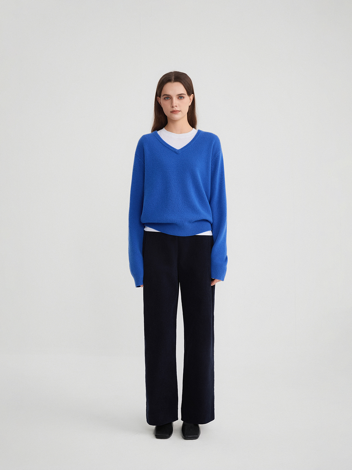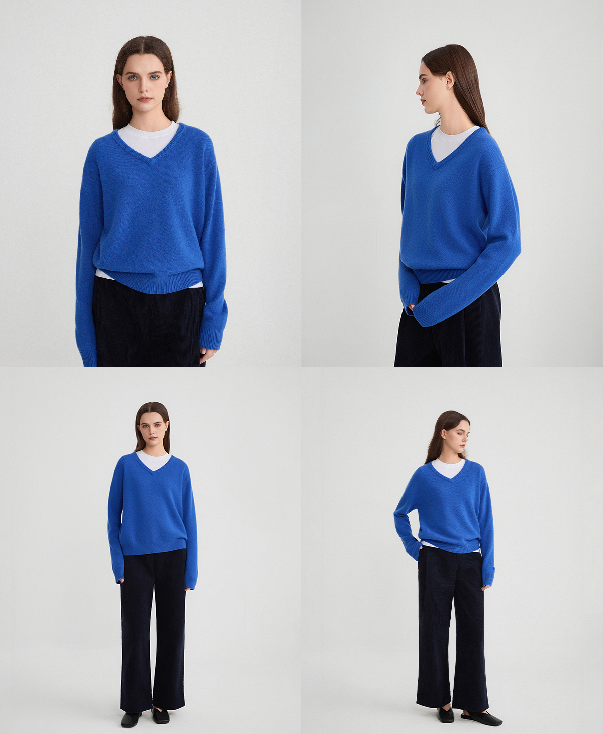 The rumah cashmere V-neck knit top, multi-colored 17.5 micron Basulan shrink-resistant and pilling-resistant