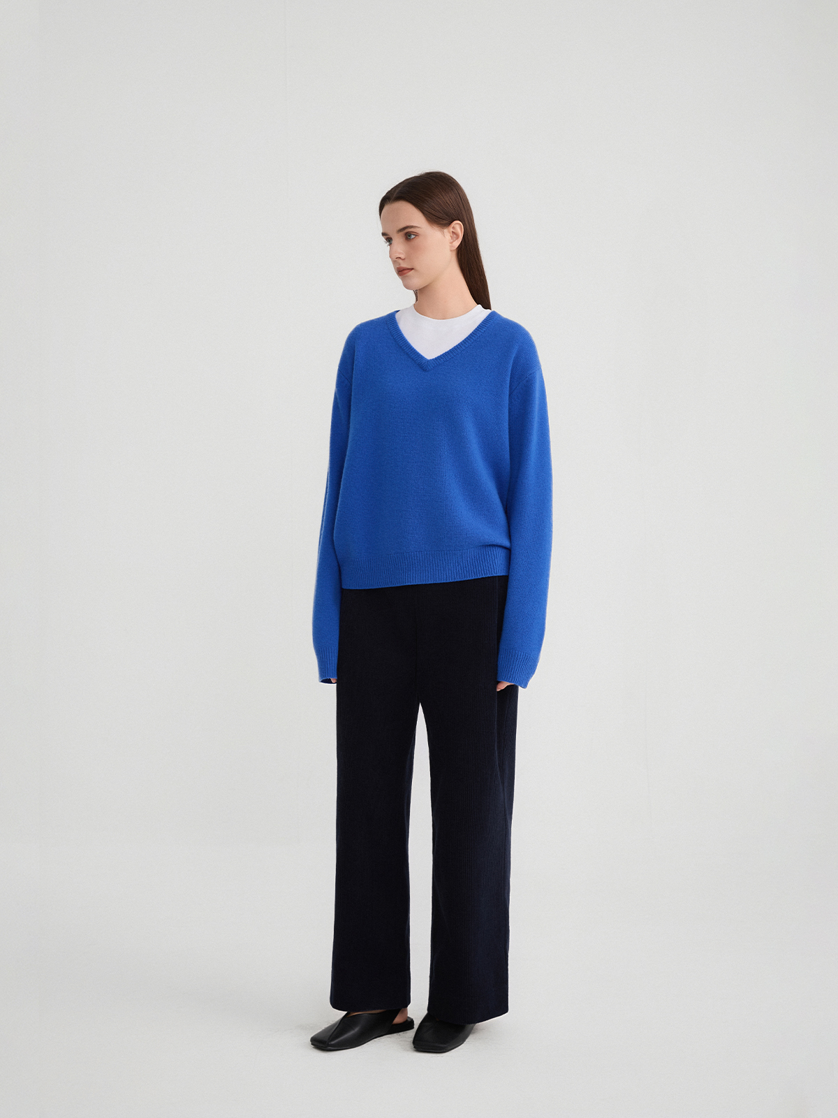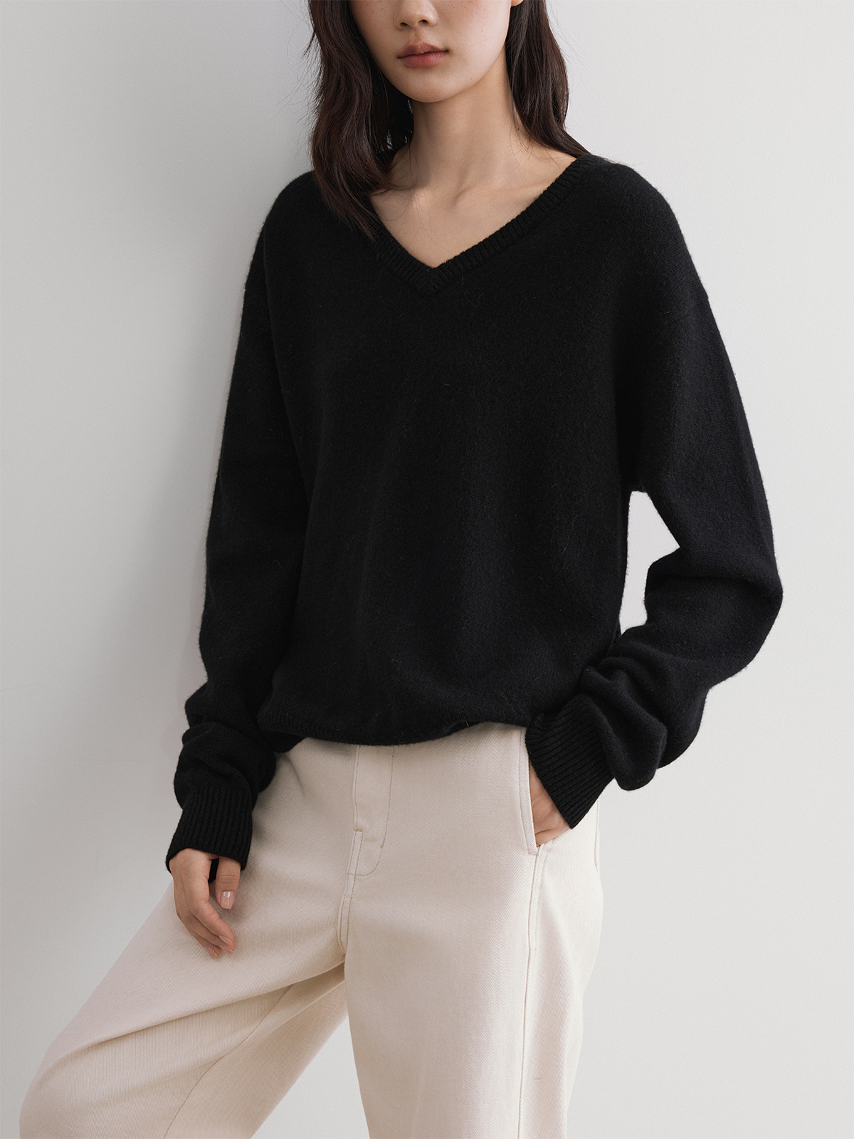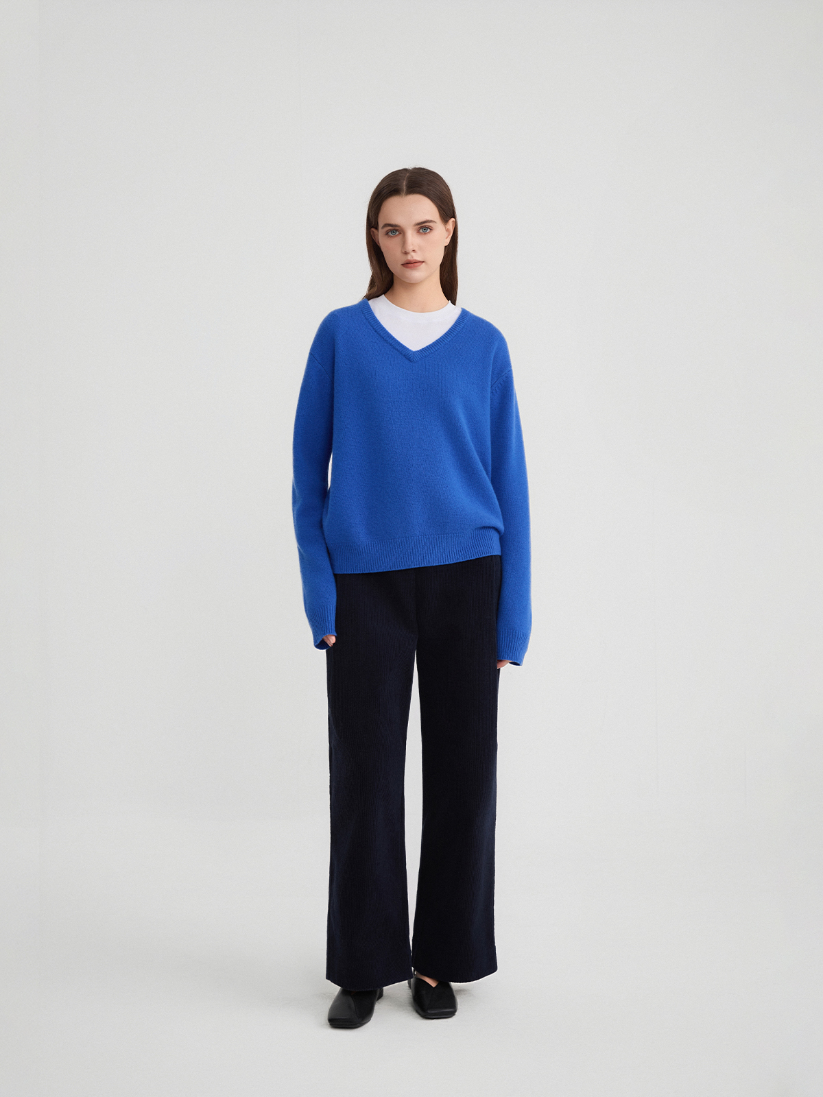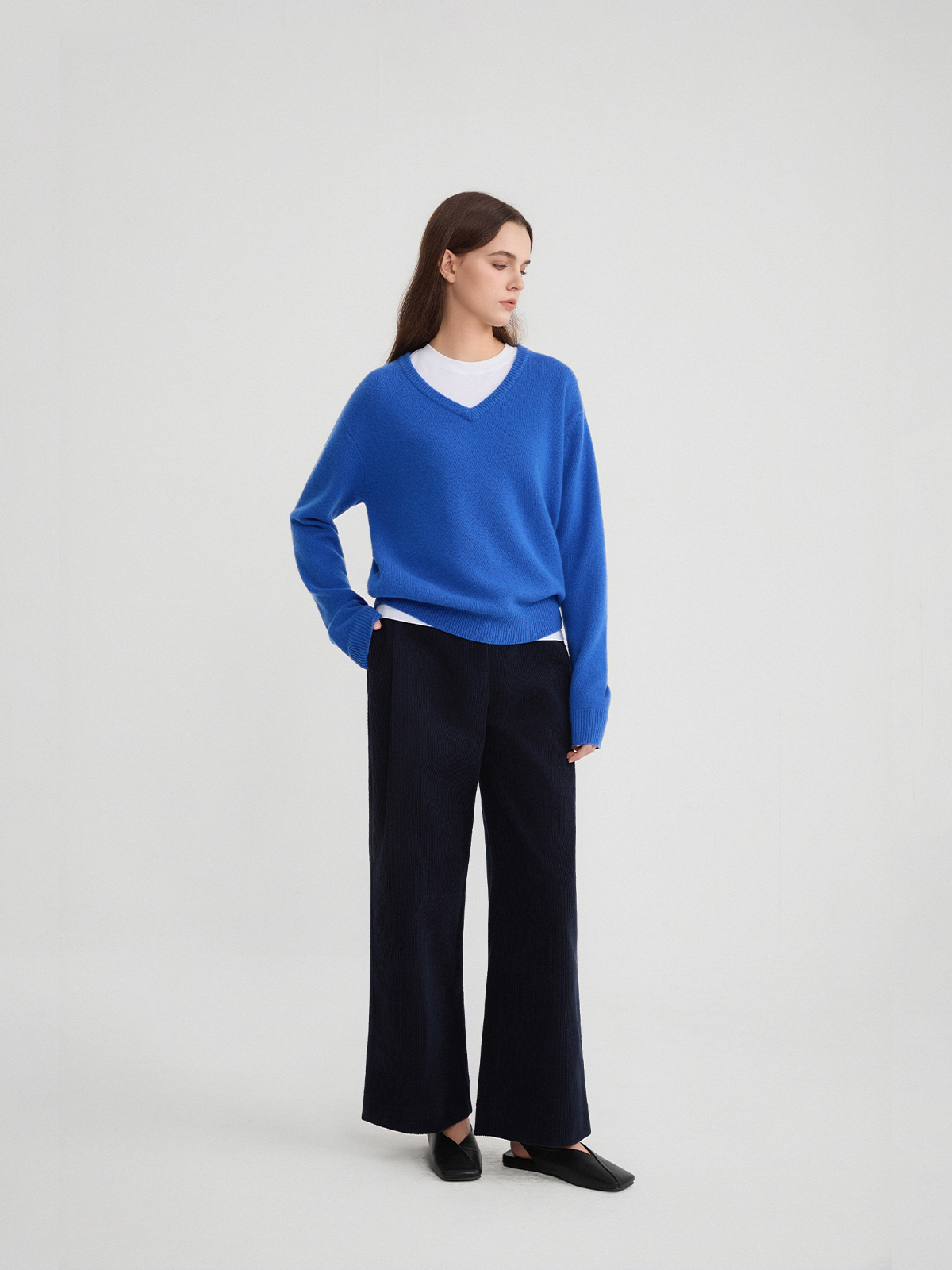 The rumah cashmere V-neck knit top, multi-colored 17.5 micron Basulan shrink-resistant and pilling-resistant
