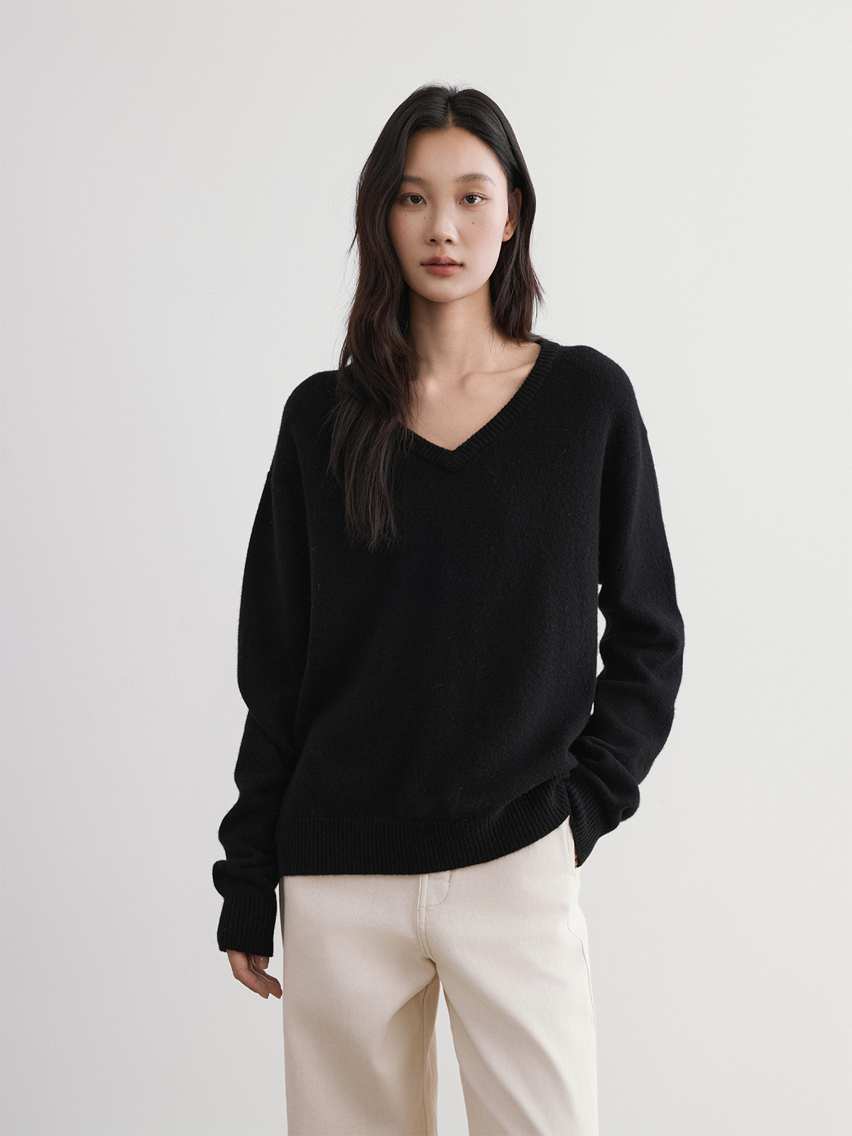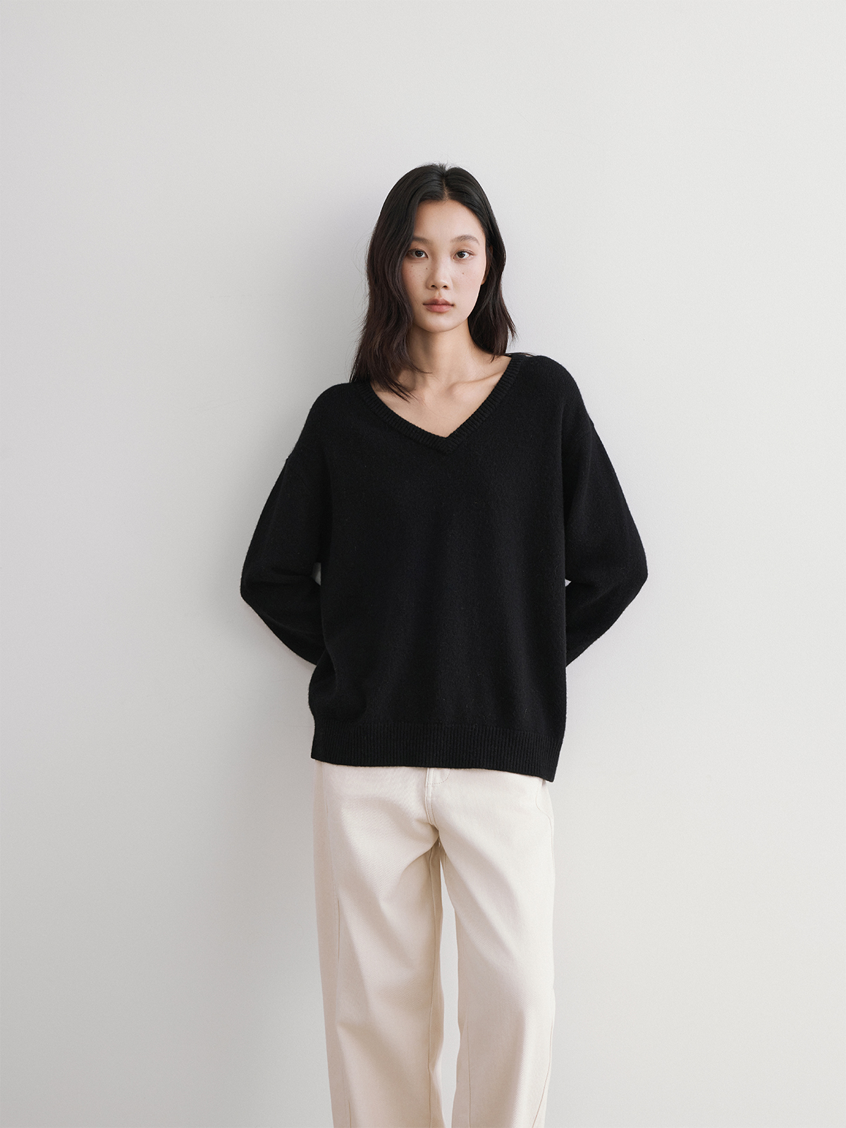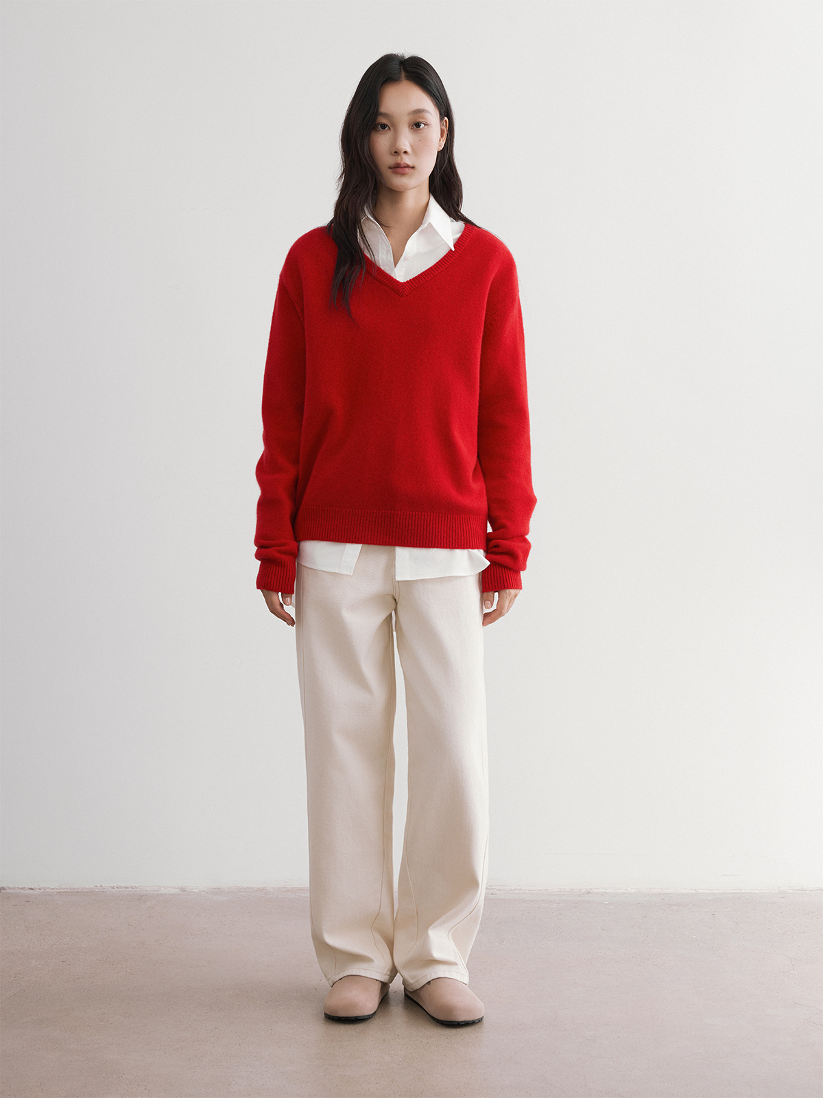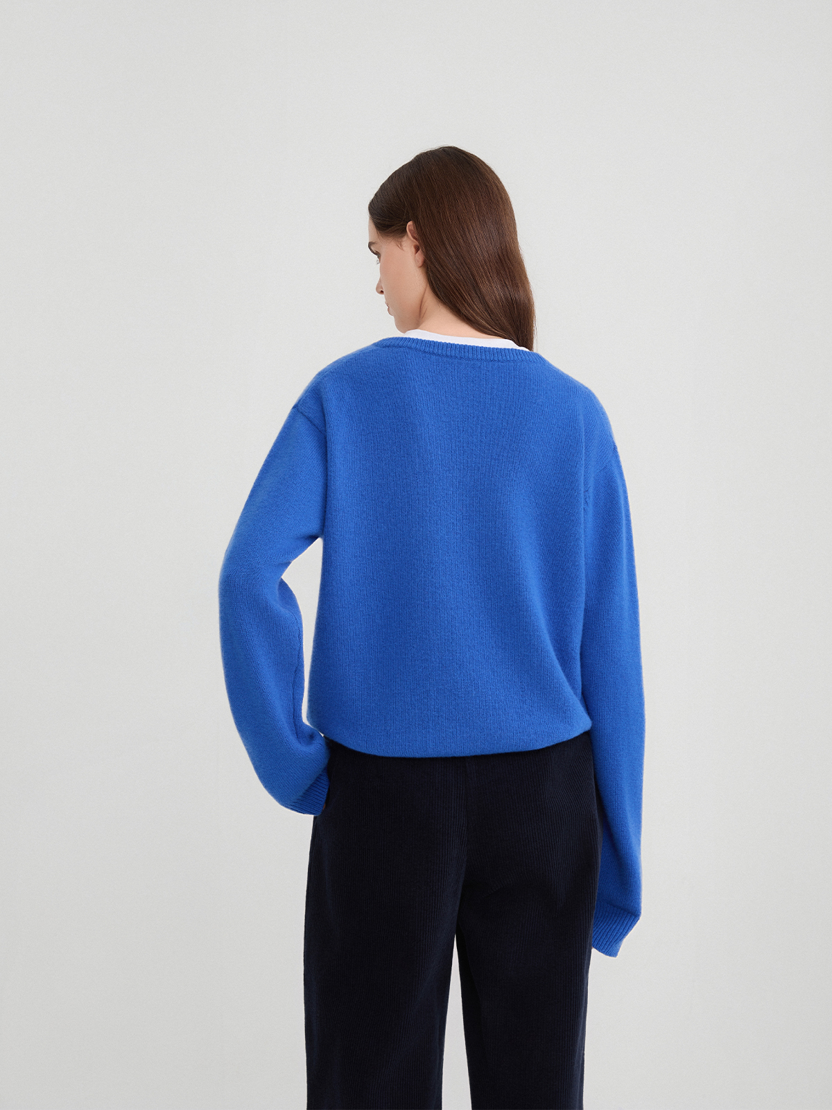 The rumah cashmere V-neck knit top, multi-colored 17.5 micron Basulan shrink-resistant and pilling-resistant