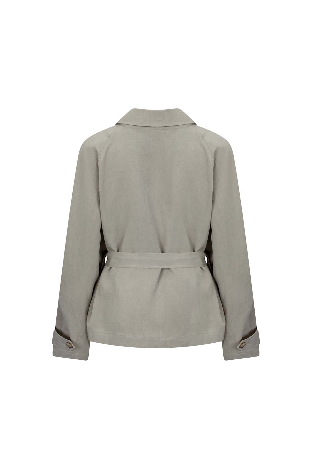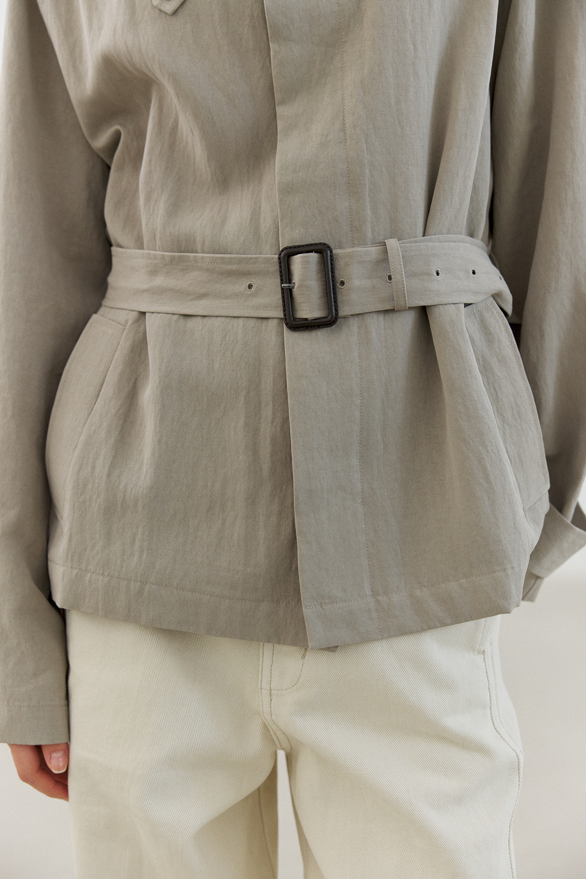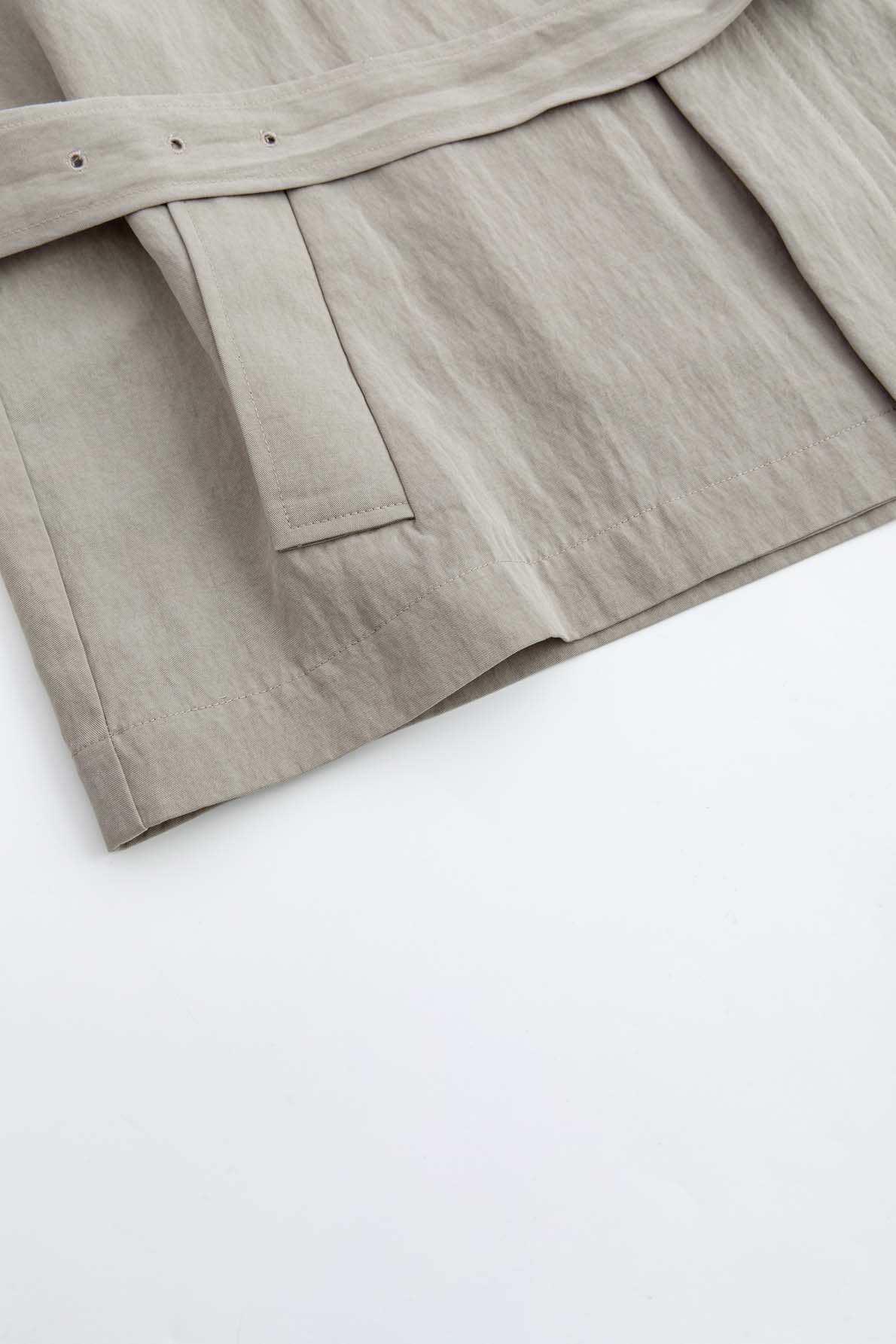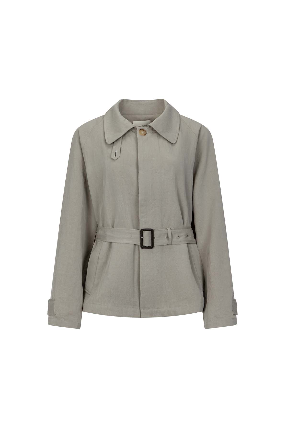 The rumah grey short buckle trench coat, Lyocell imitation hemp soft drop trench coat