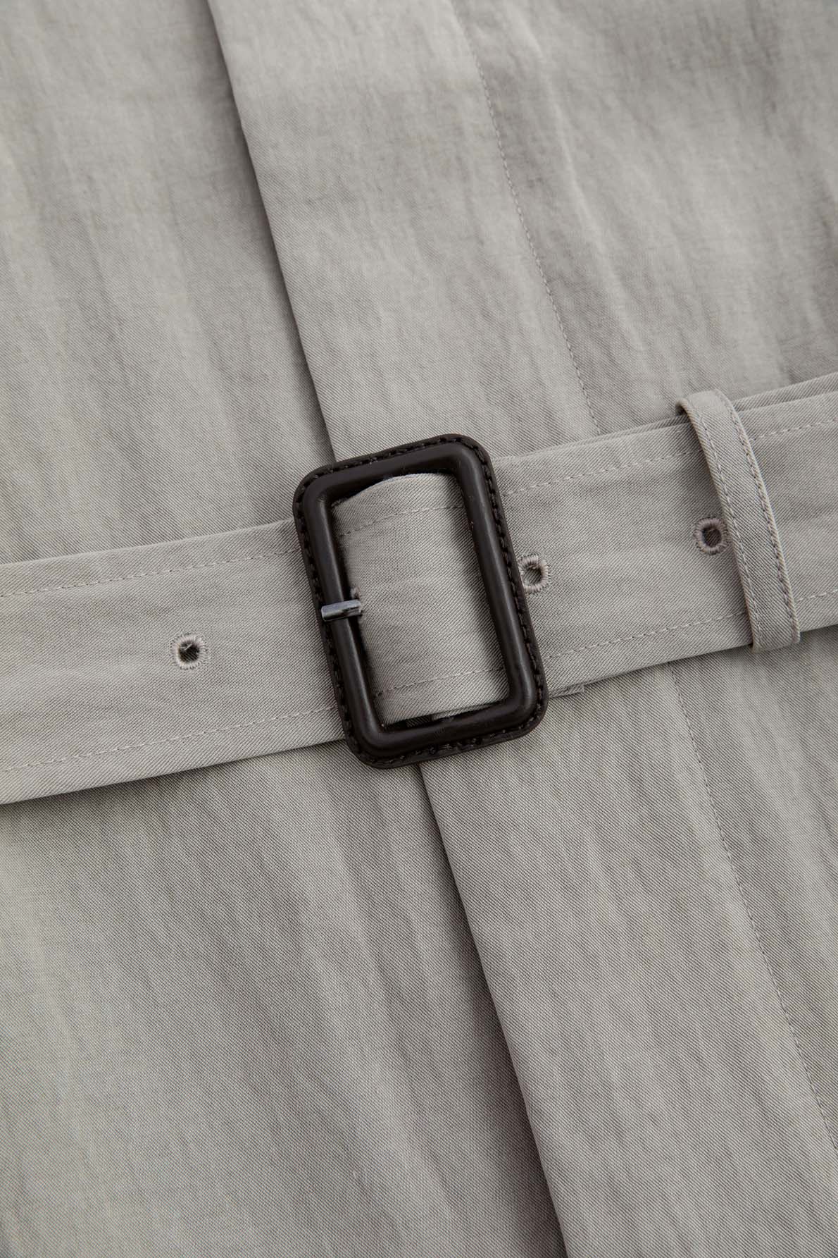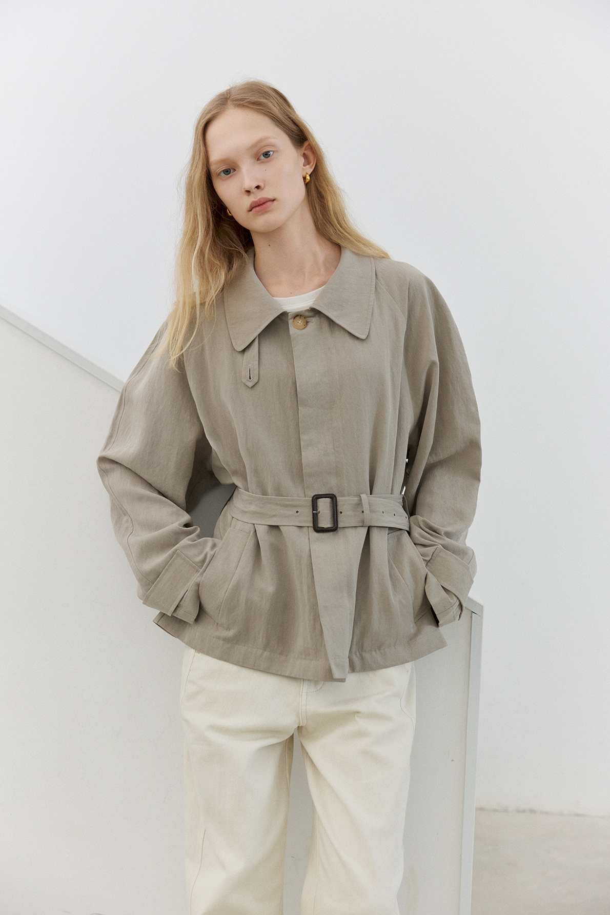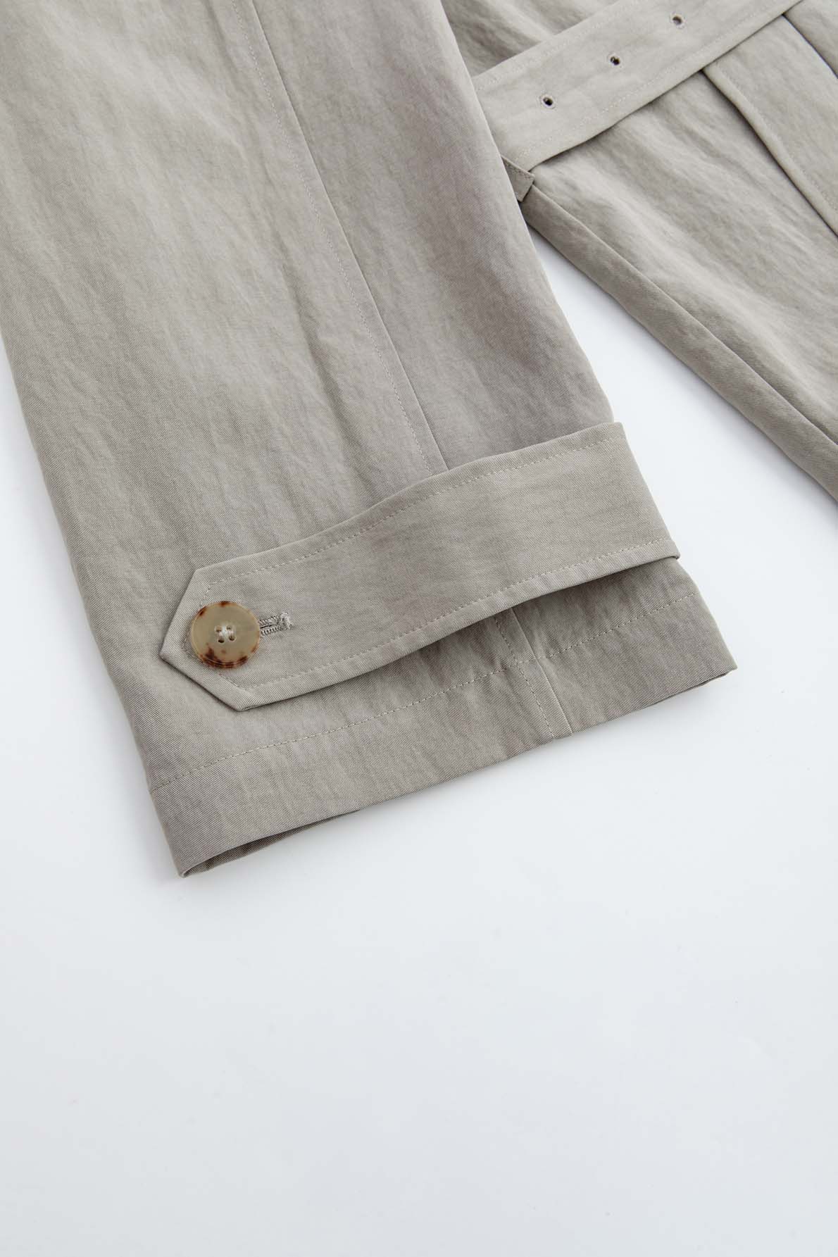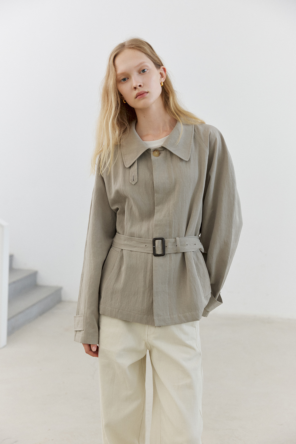 The rumah grey short buckle trench coat, Lyocell imitation hemp soft drop trench coat