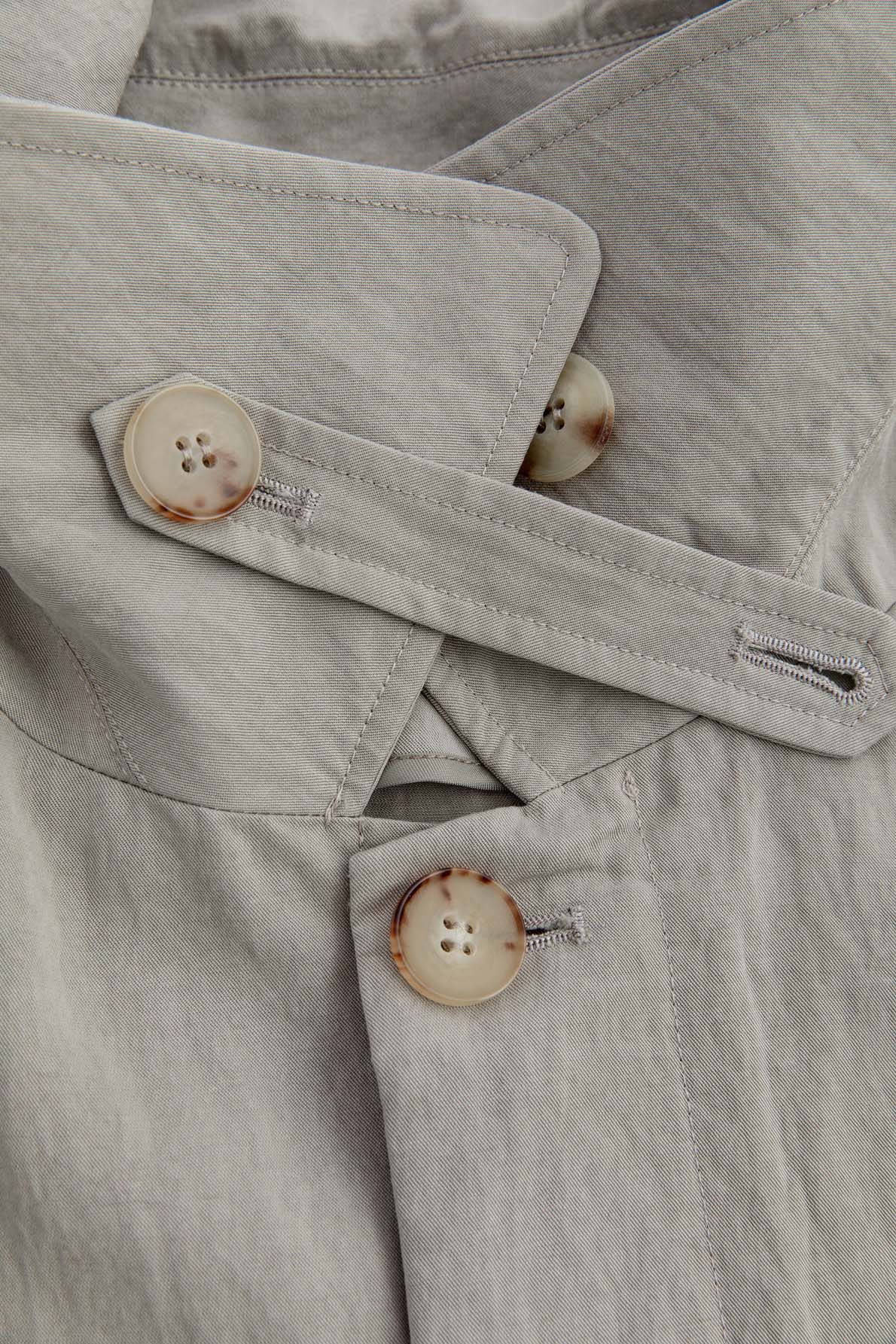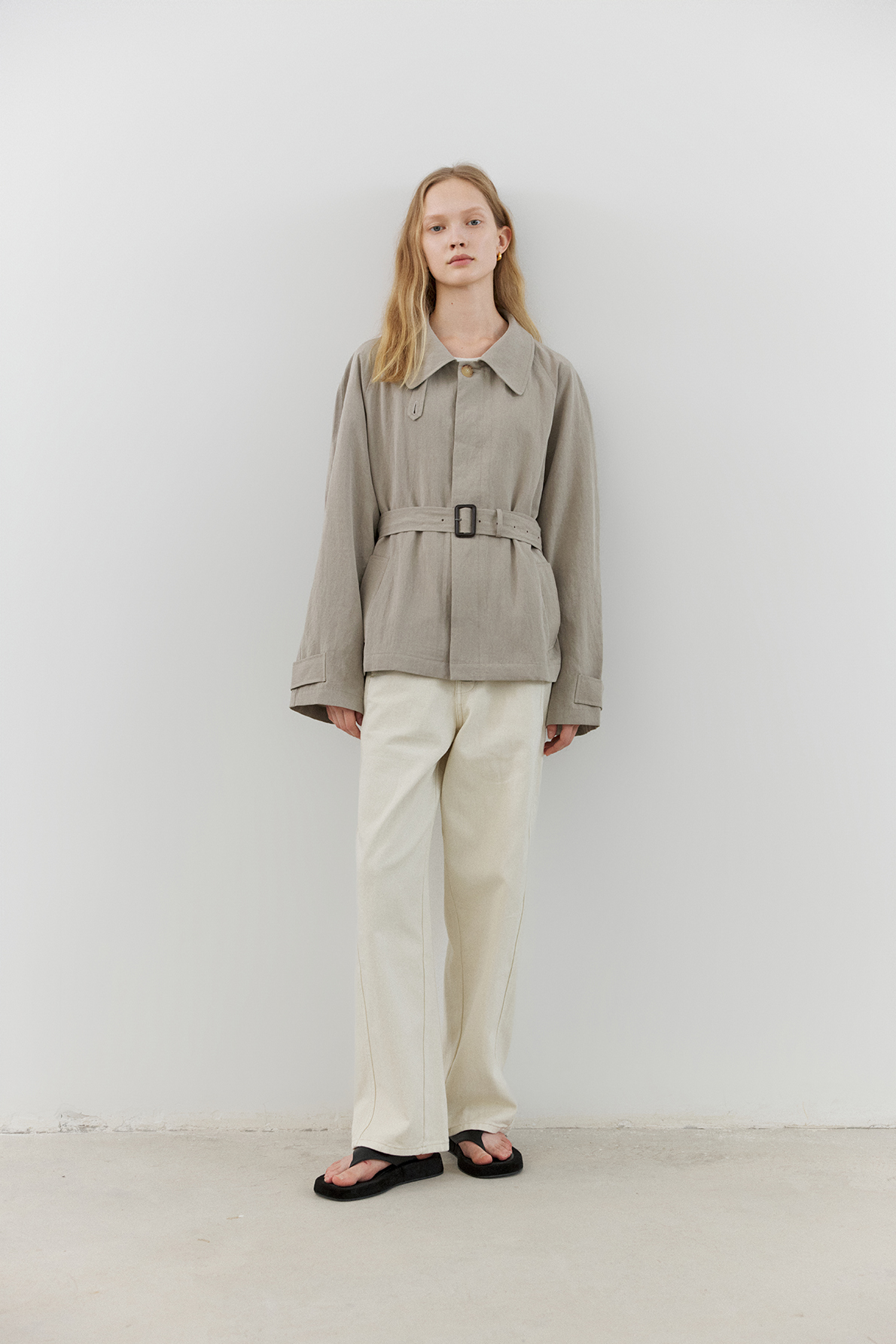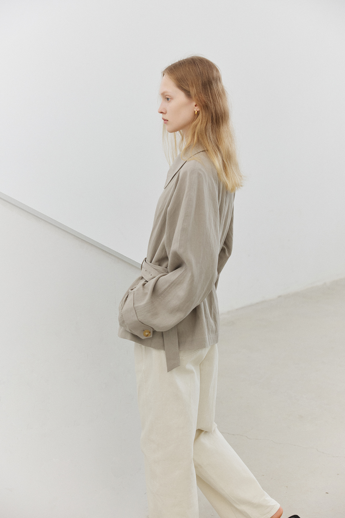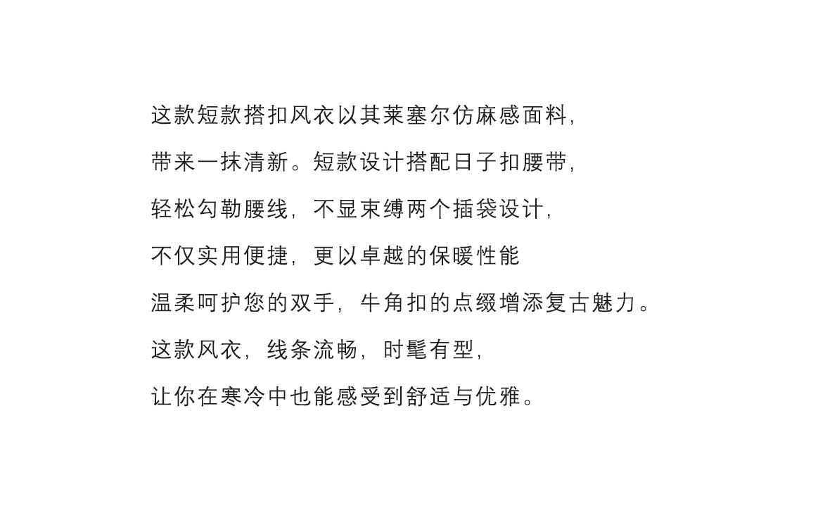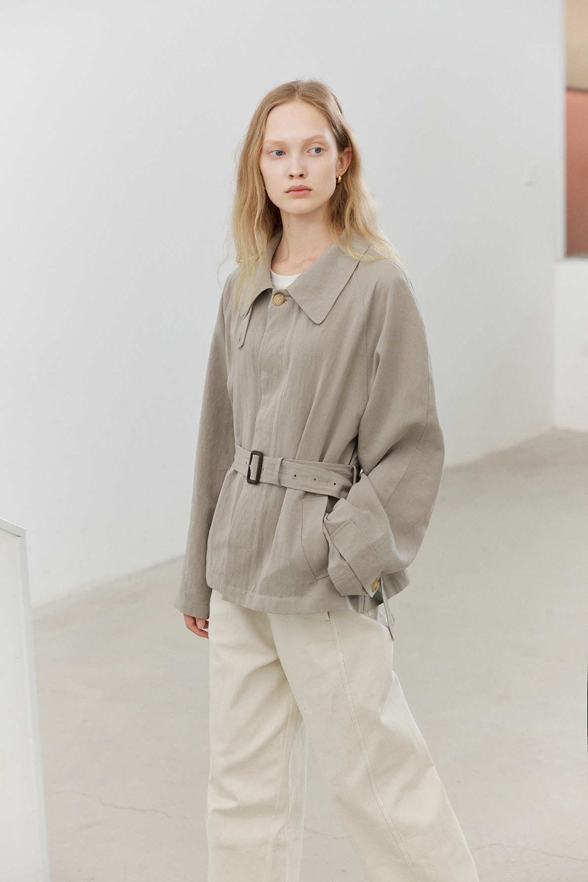The rumah grey short buckle trench coat, Lyocell imitation hemp soft drop trench coat