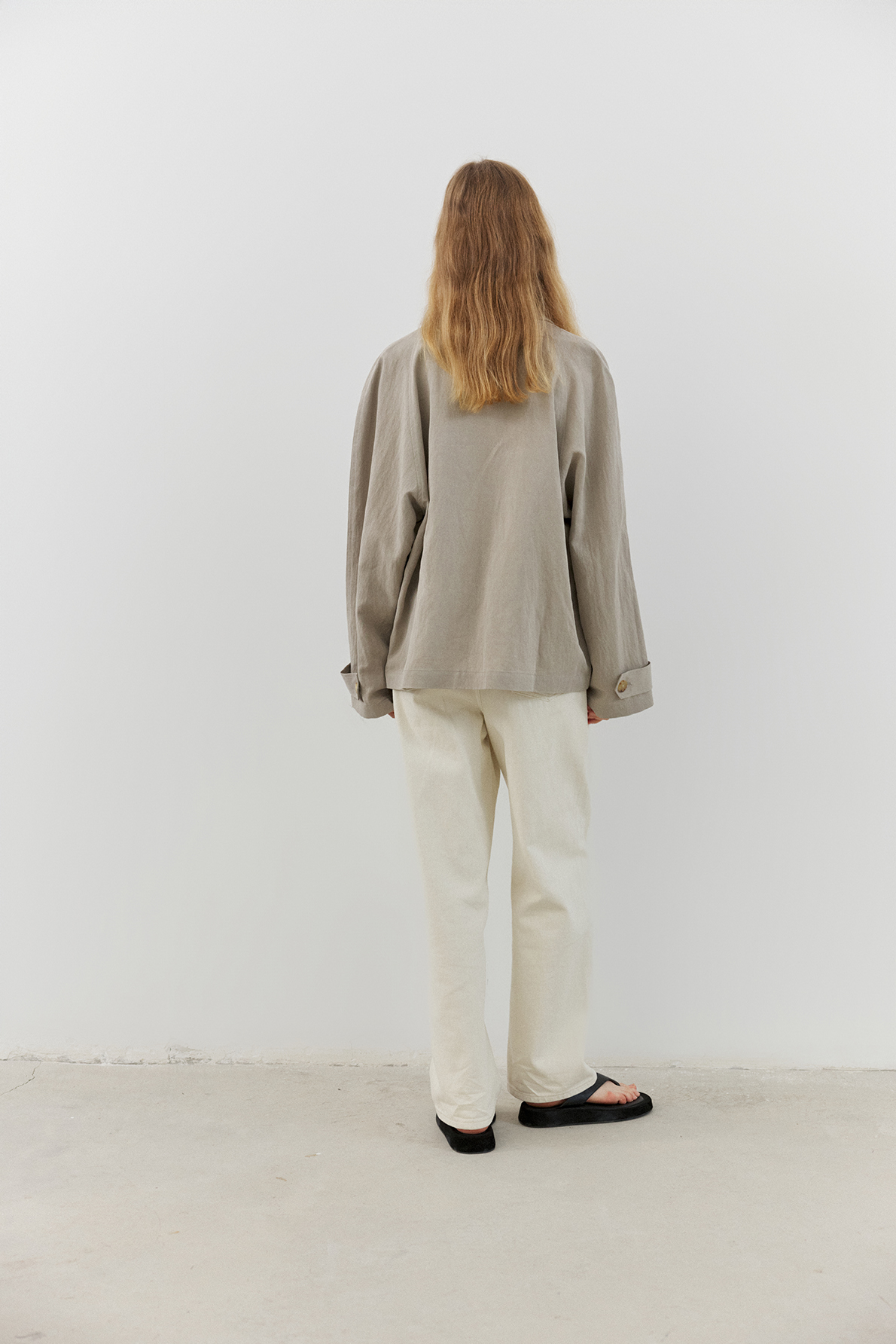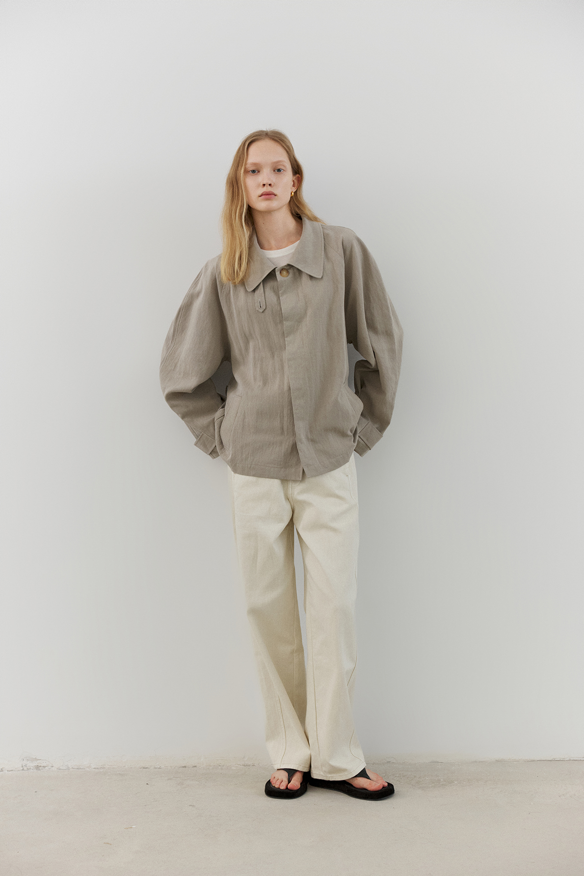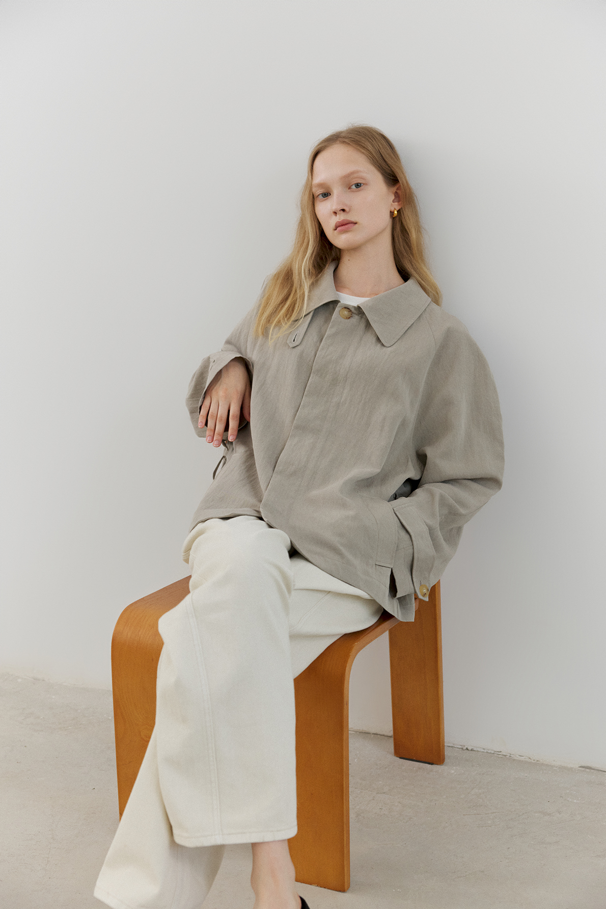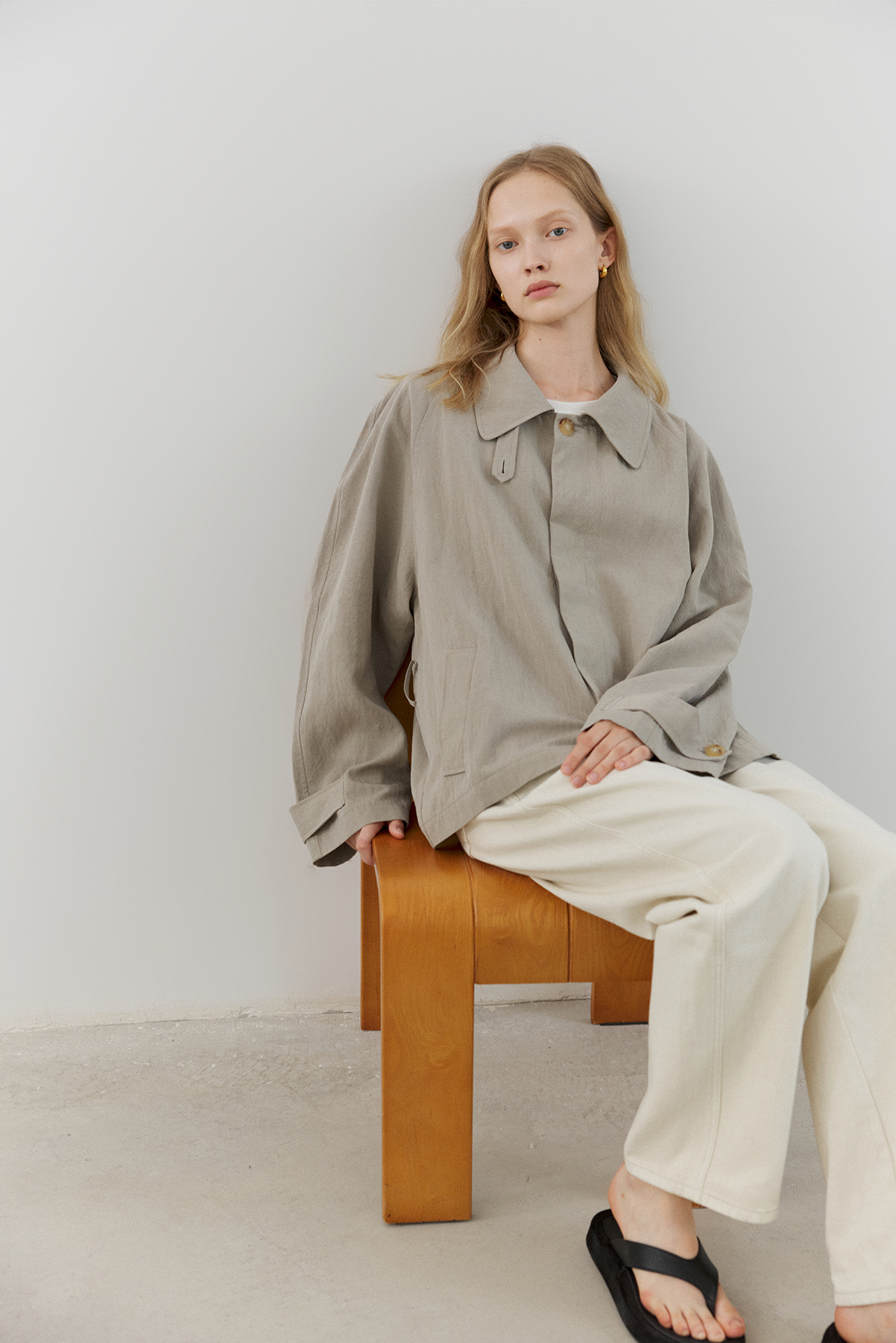 The rumah grey short buckle trench coat, Lyocell imitation hemp soft drop trench coat