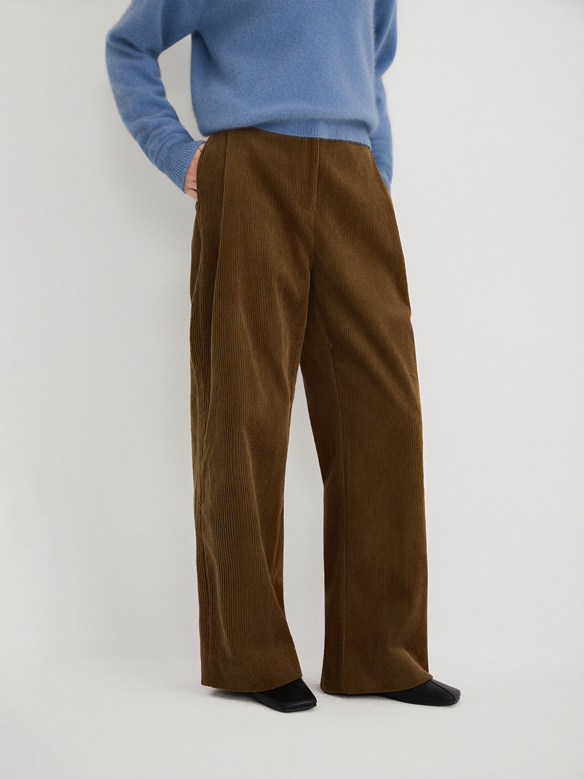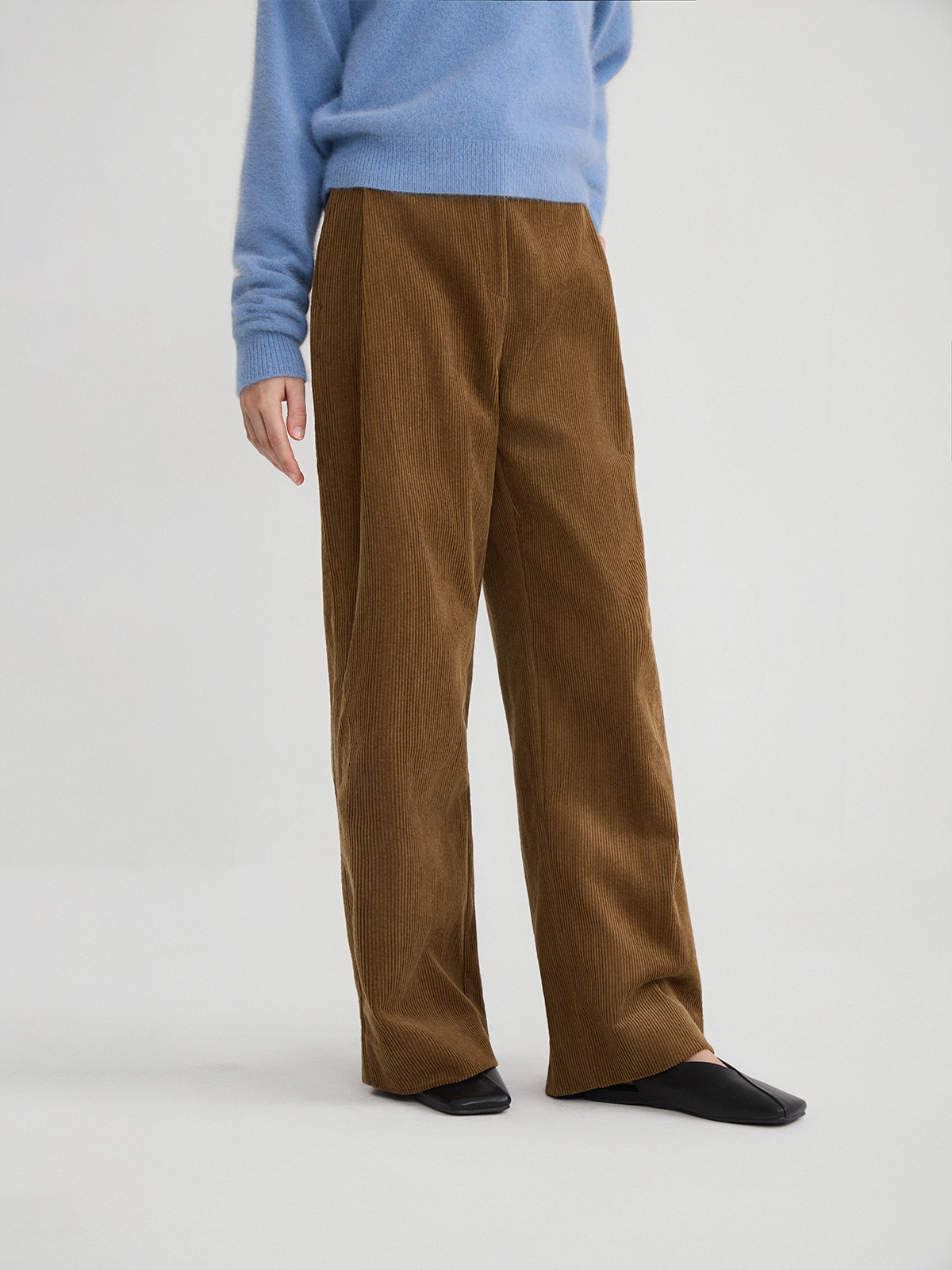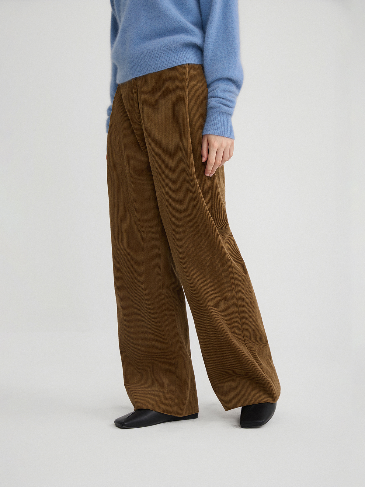 The rumah retro glossy corduroy casual pants, three-dimensional strip velvet micro-cocoon tooling high-waisted wide-leg pants