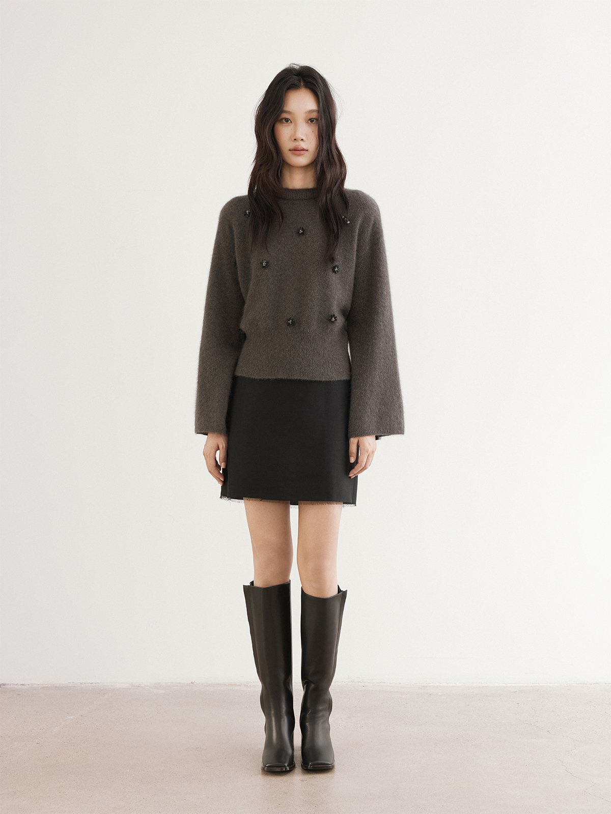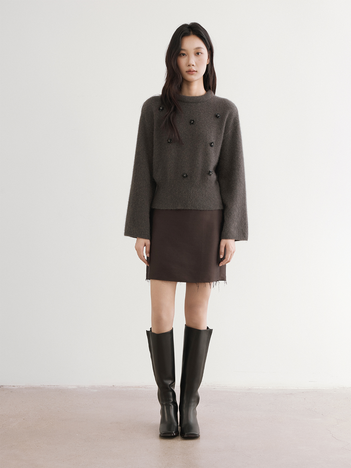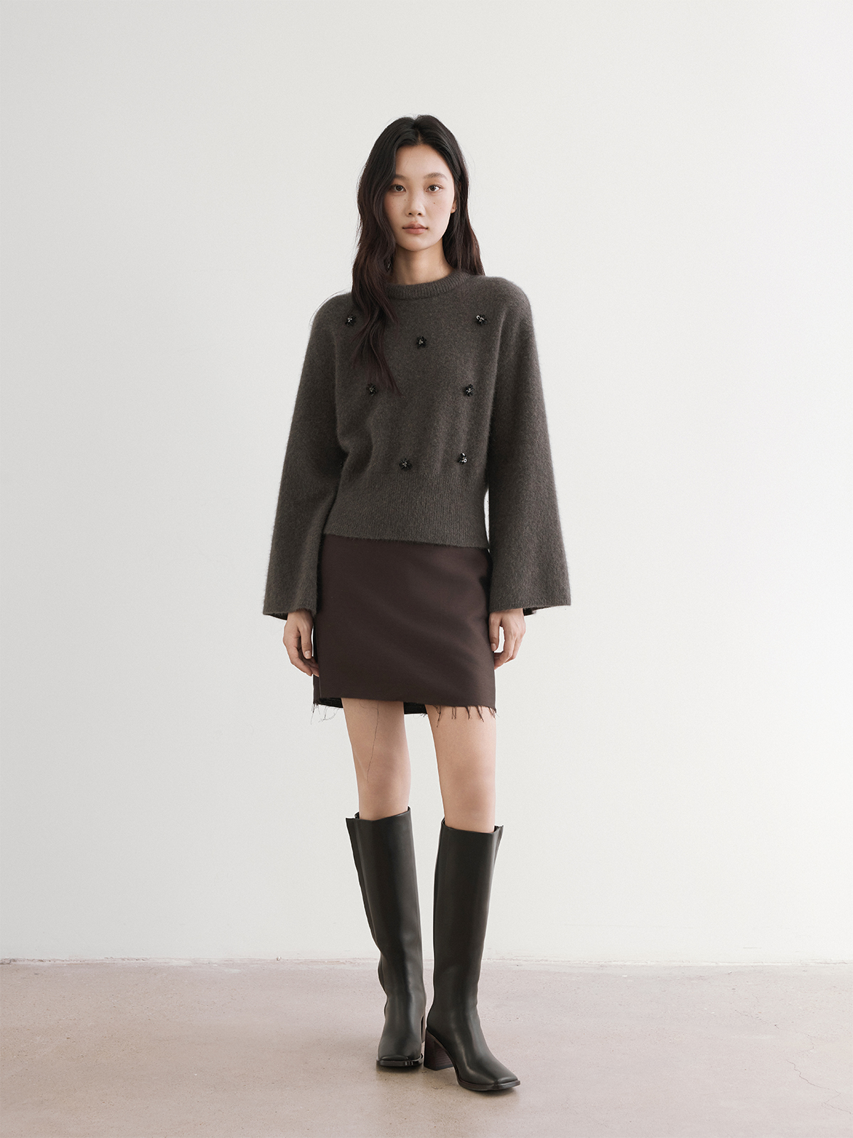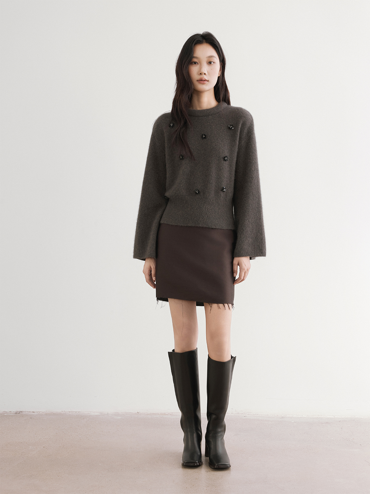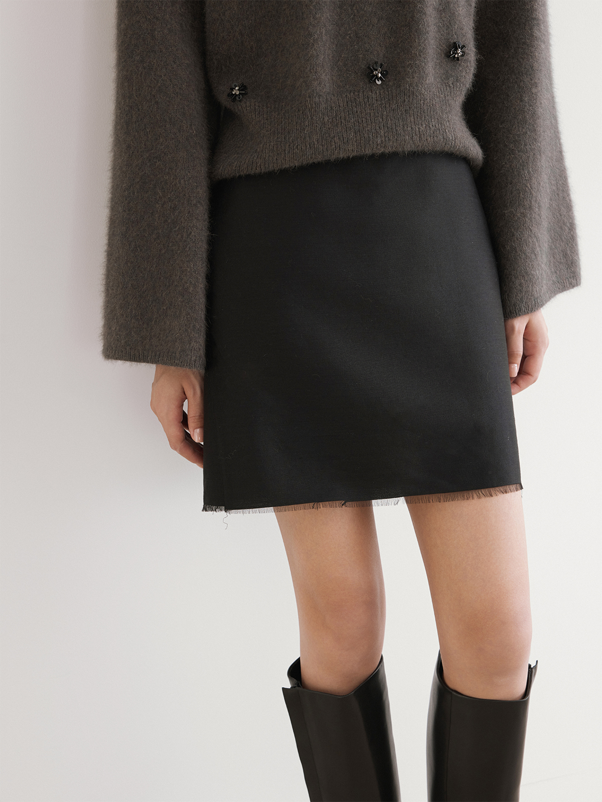 The rumah silk wool skirt rough edge design, imported fabric 46MM heavy luster, festival style