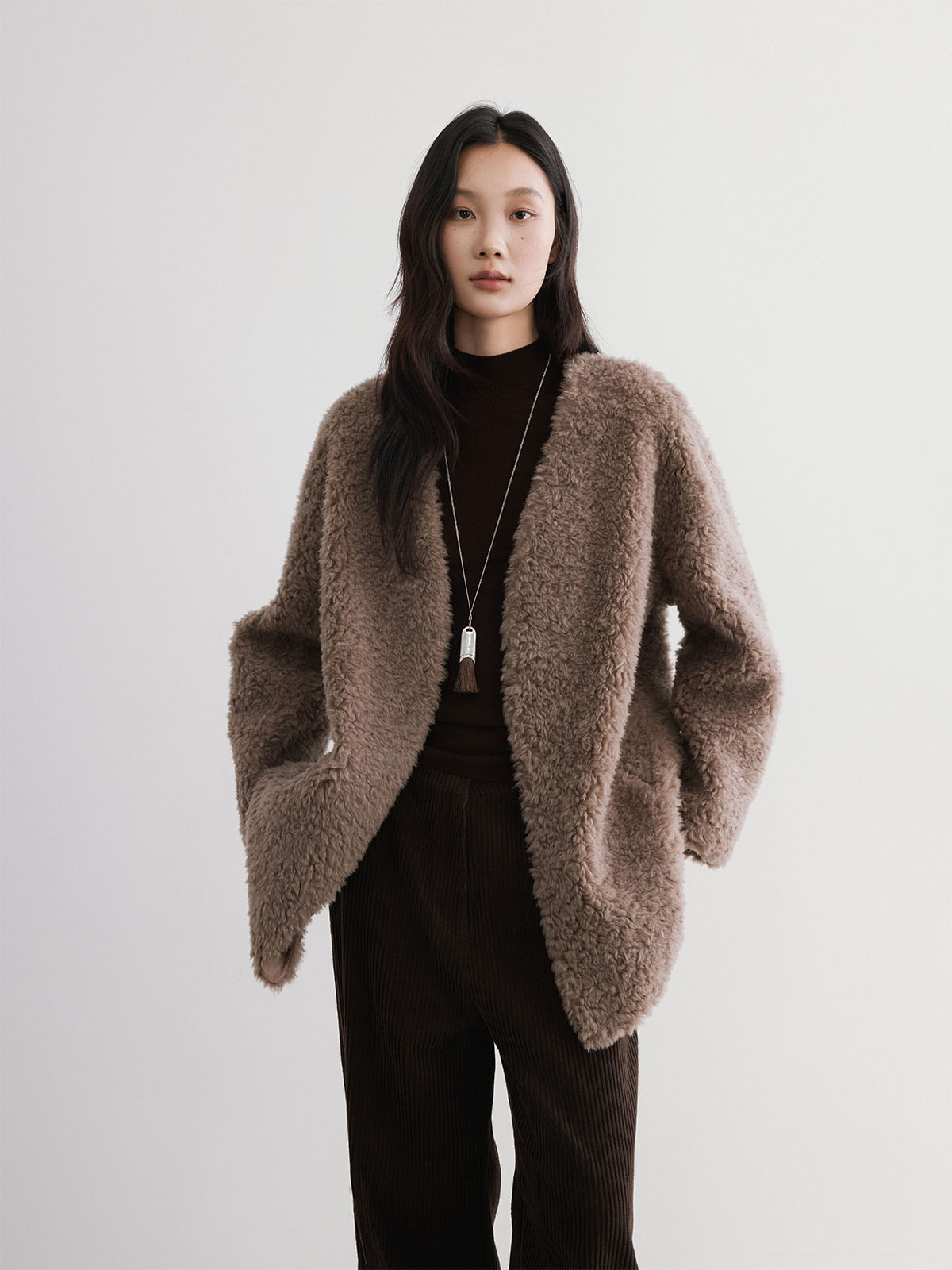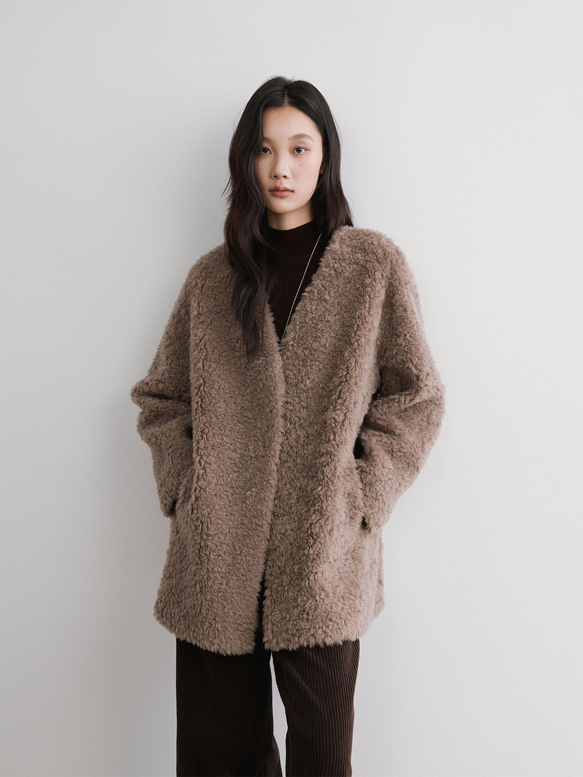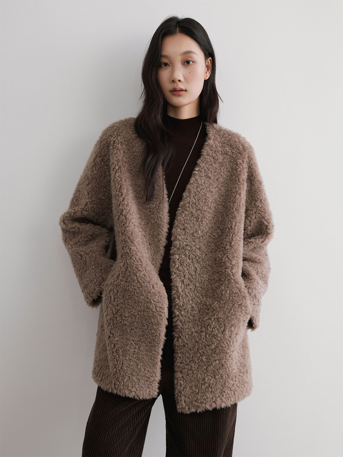 The rumah wool collarless coat, high-end imitation fur integrated coat, new in autumn and winter