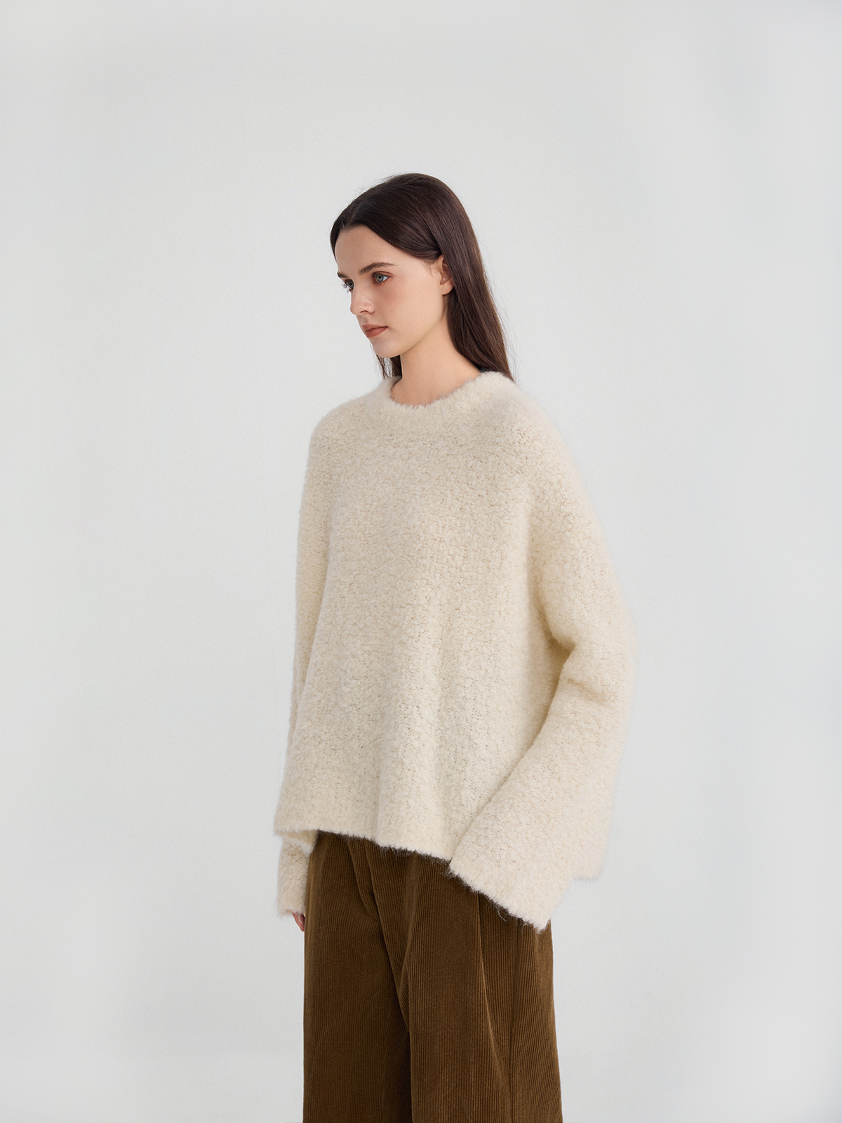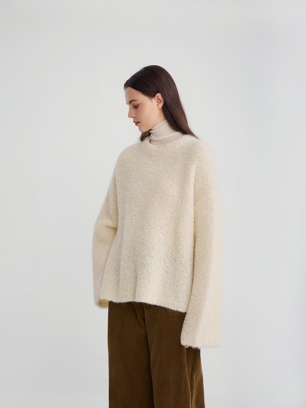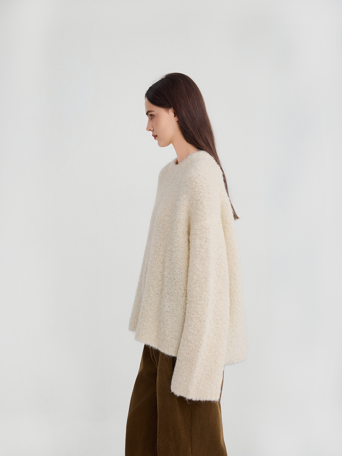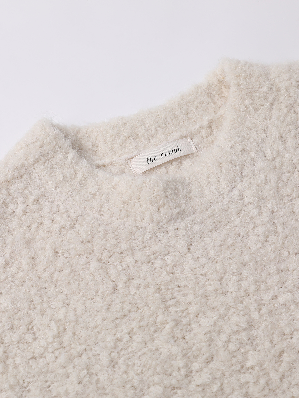 Therumah milk white teddy silhouette sweater three-dimensional cut alpaca chicory soft waxy loop yarn knitted sweater