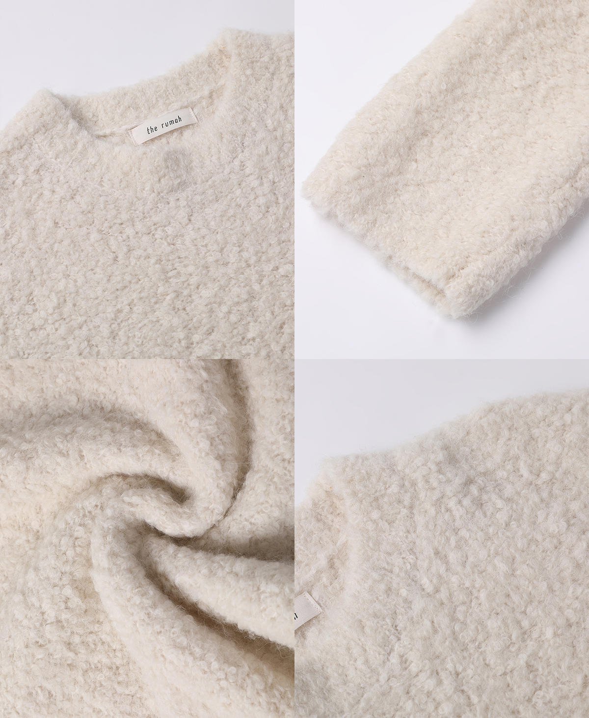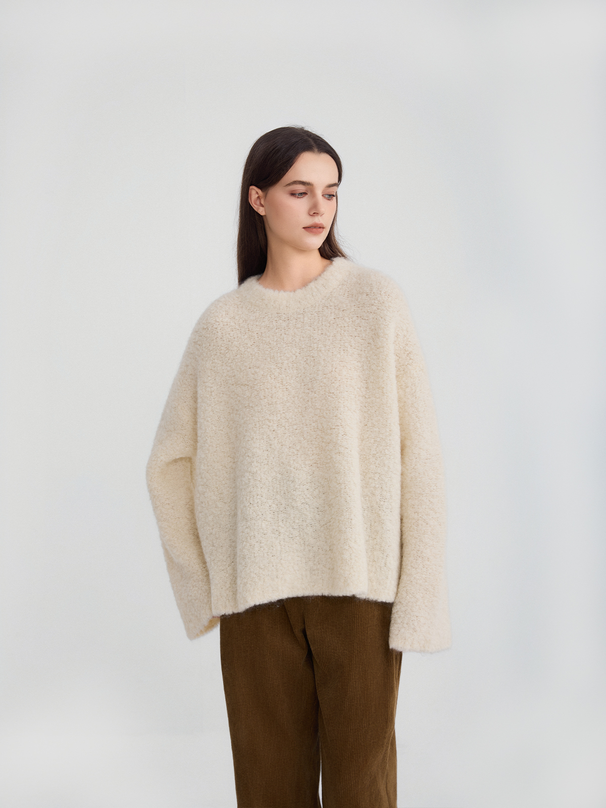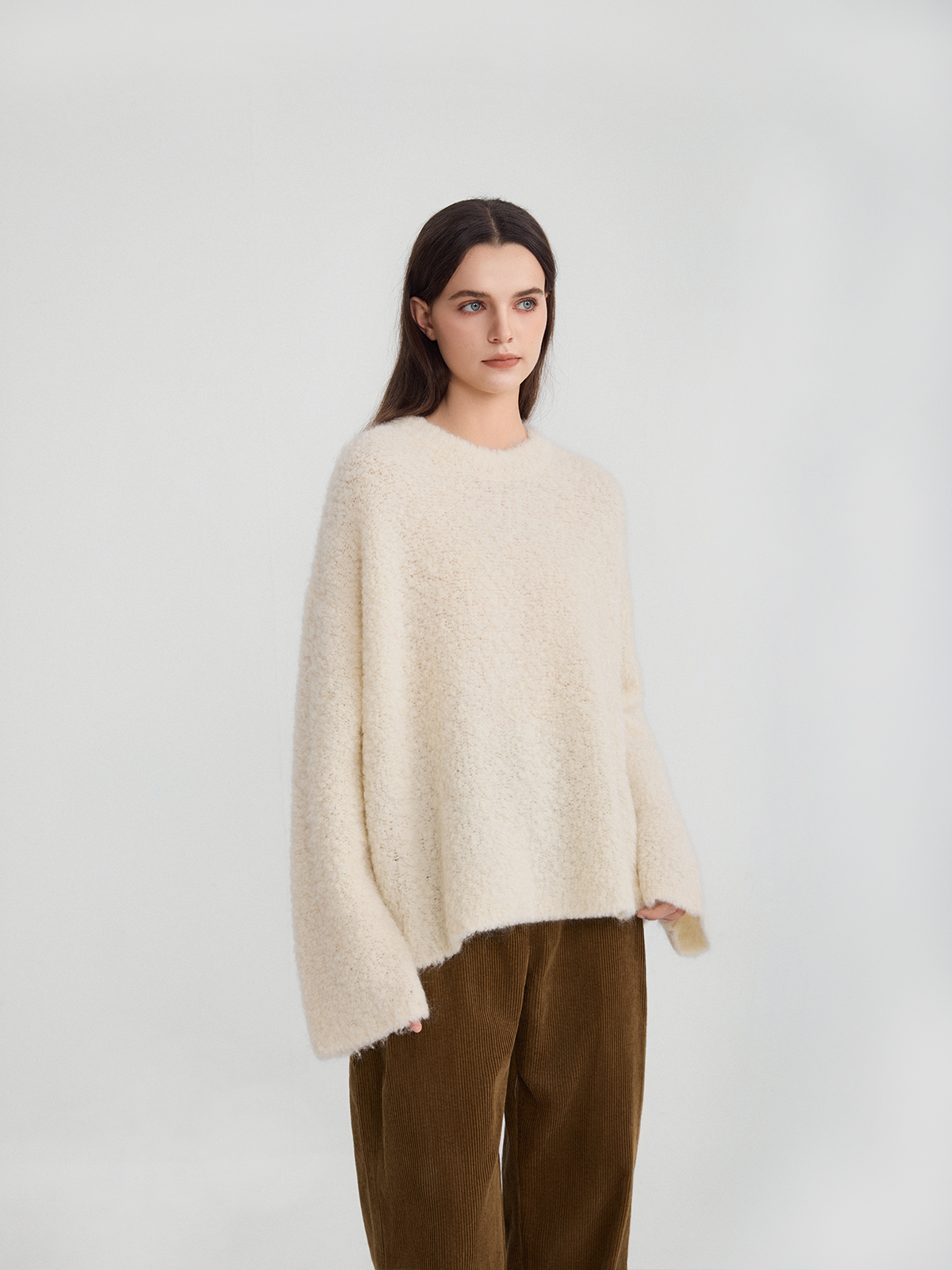 Therumah milk white teddy silhouette sweater three-dimensional cut alpaca chicory soft waxy loop yarn knitted sweater