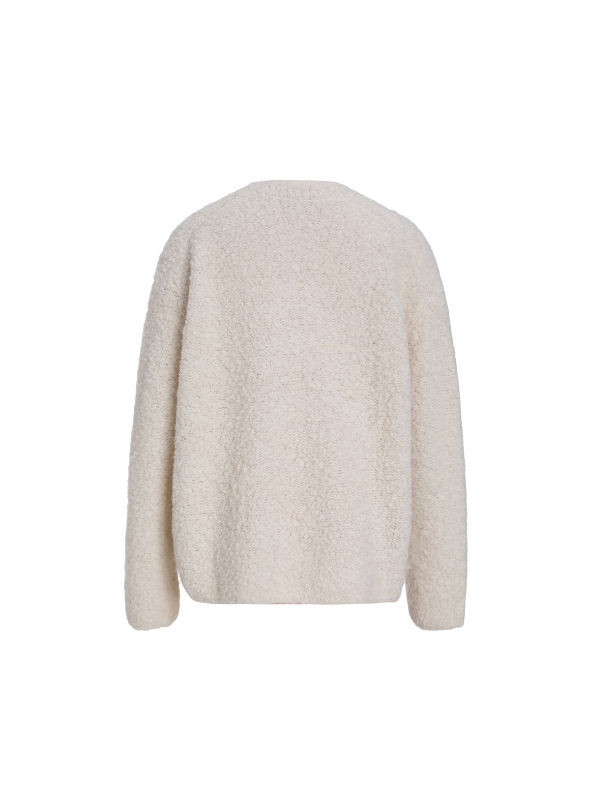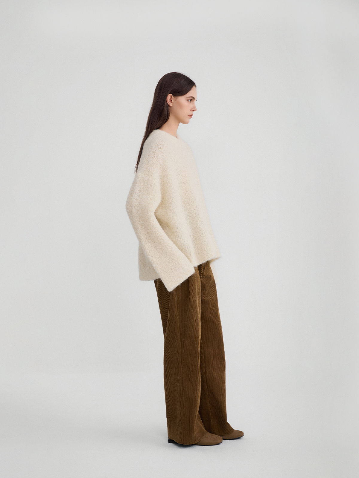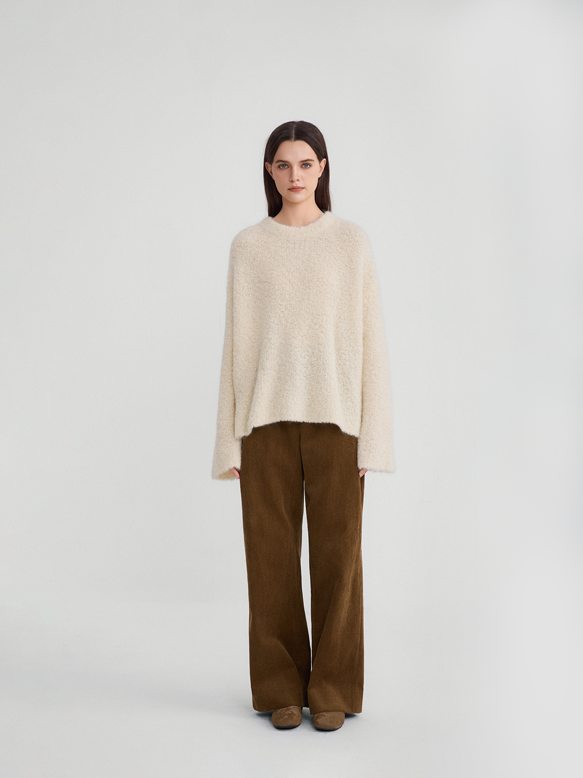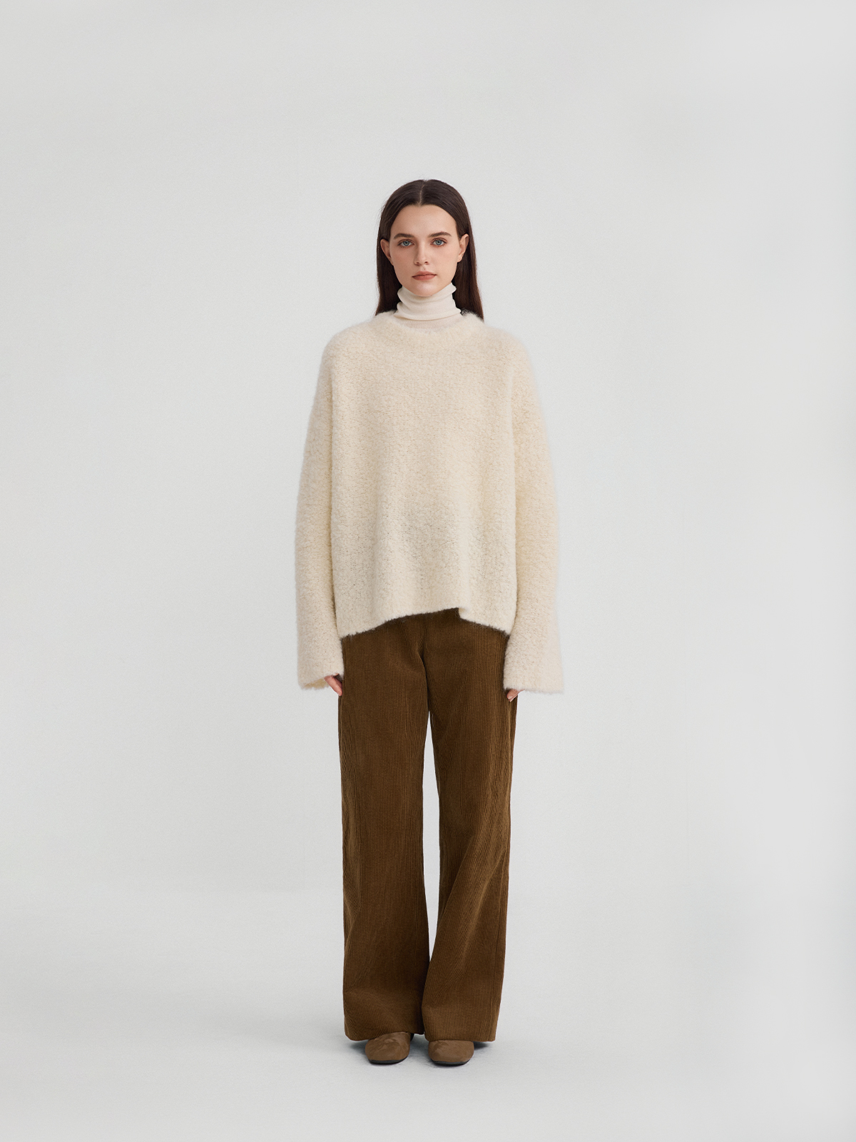 Therumah milk white teddy silhouette sweater three-dimensional cut alpaca chicory soft waxy loop yarn knitted sweater
